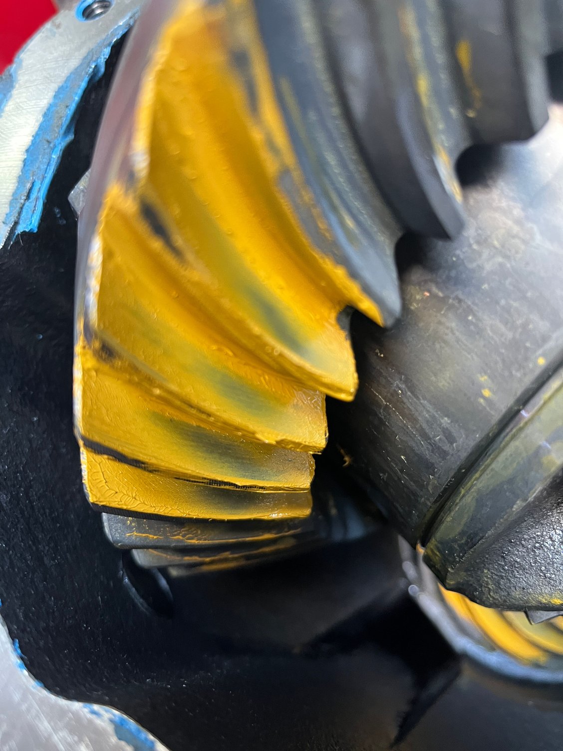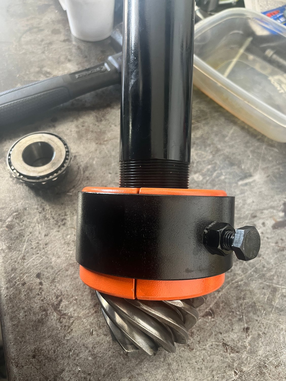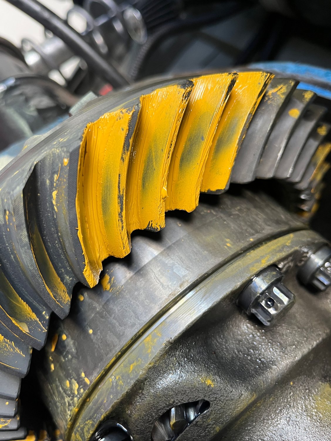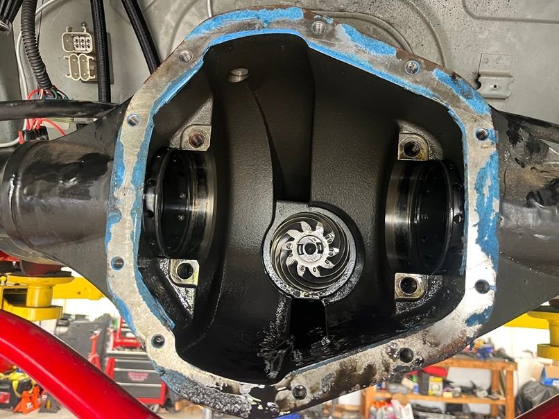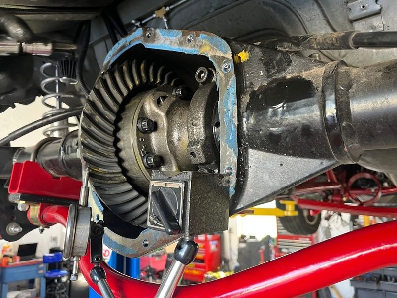 After that we had to replace the 4.10 gears in the Strange S60 with some 3.73’s. Made a setup bearing by honing the center of the bushing and a setup bearing sleeve by grinding down the outer surface to make the clearance checks go faster. We dialed in the clearances, checked the rub pattern, and bolted it back up.