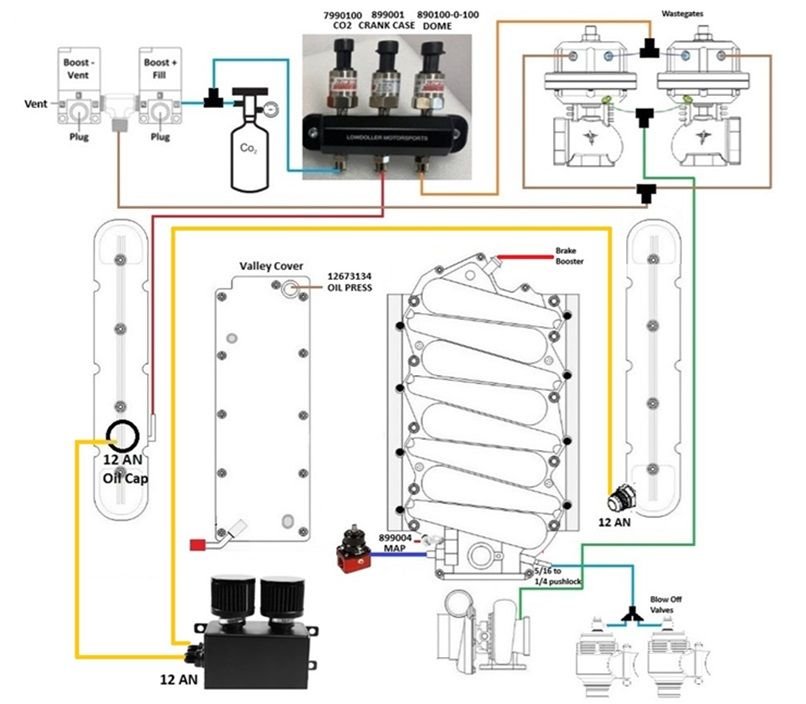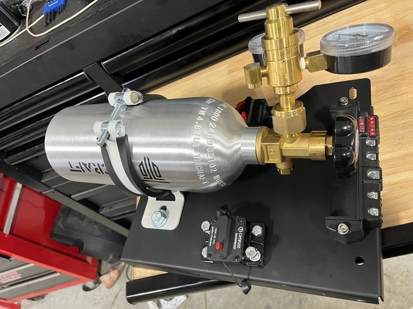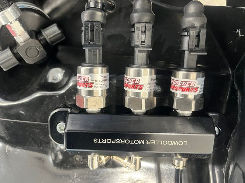 Crankcase, Dome, and CO2 pressure sensors mounted on a Low Dollar Motorsports 3 way block