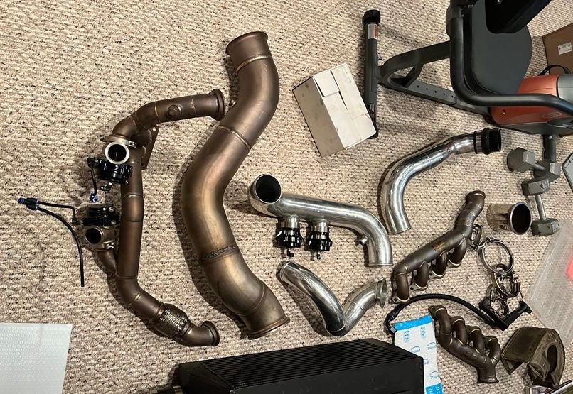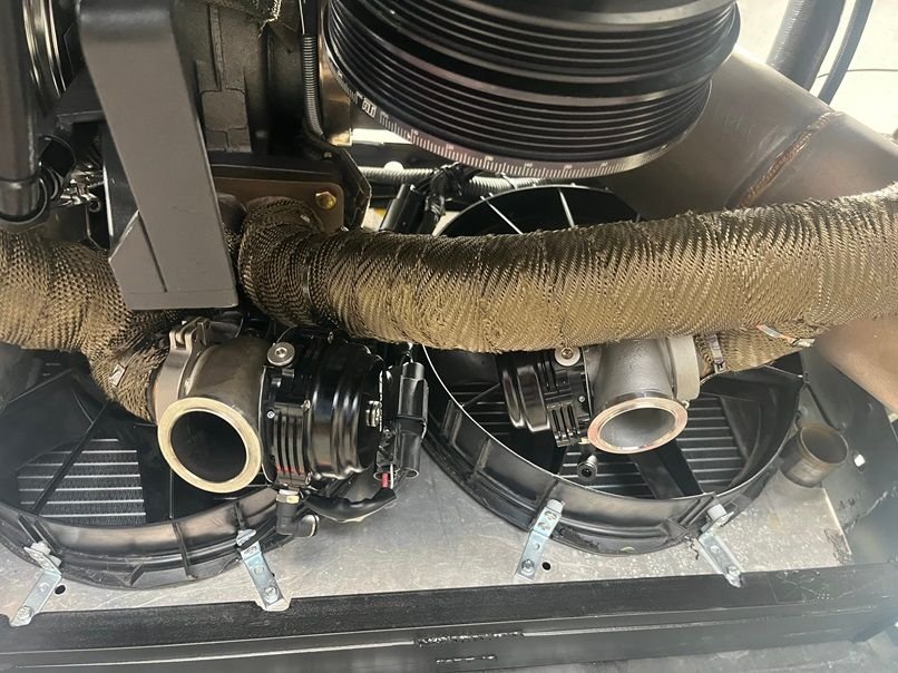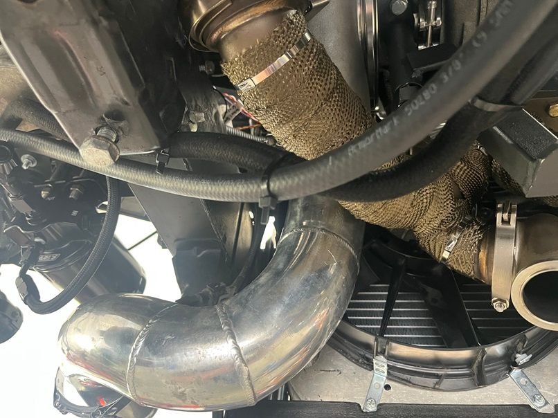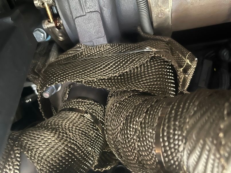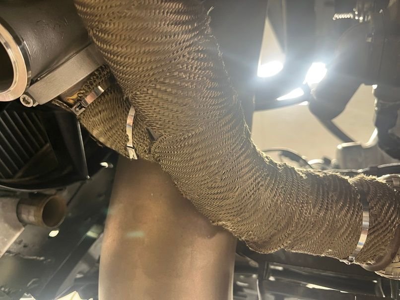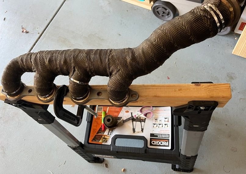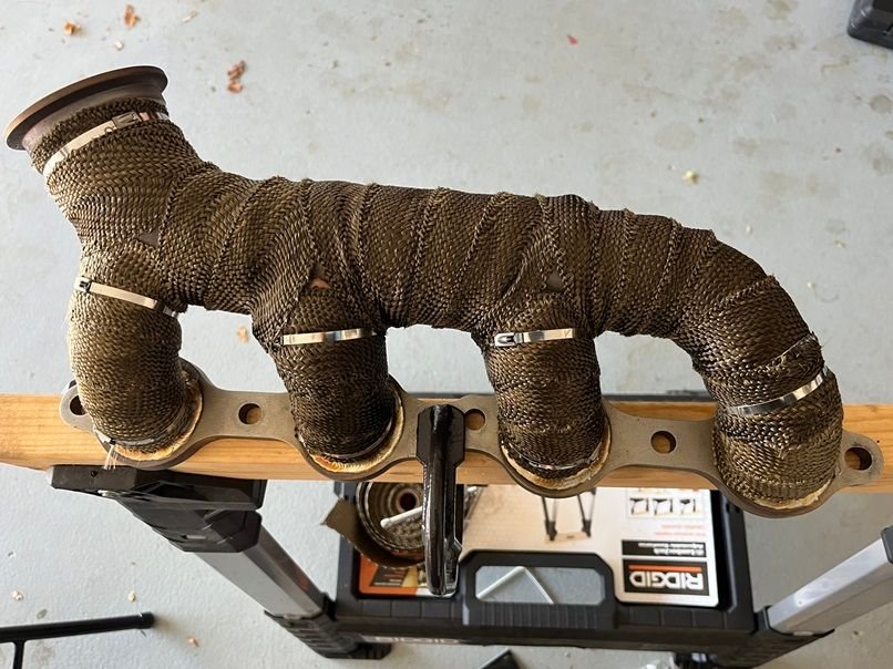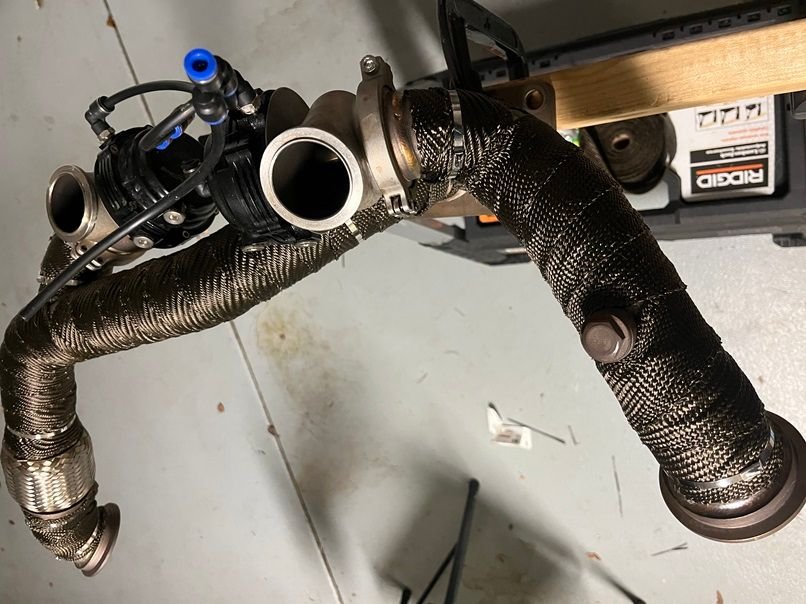 The first thing I did was put some DEI header wrap on the hot side of a nice used Huron speed T6 v3 turbo kit that I scored off FB marketplace.