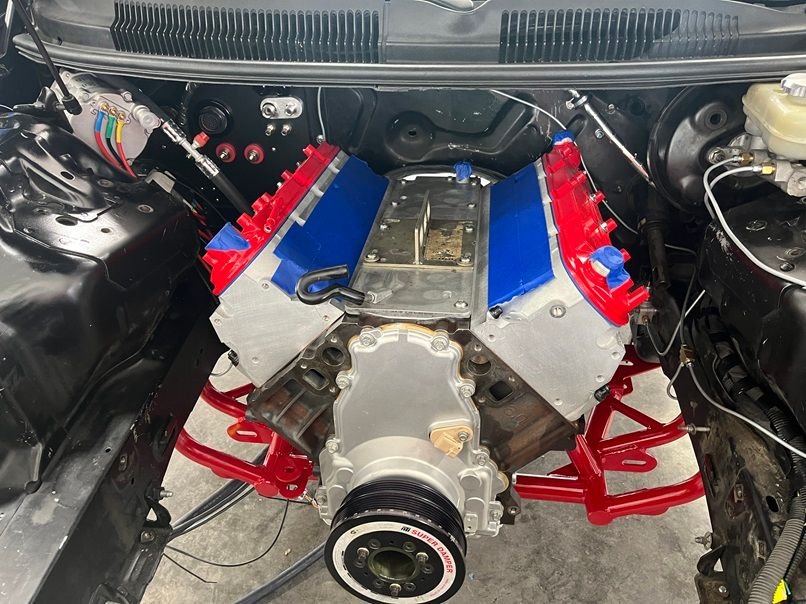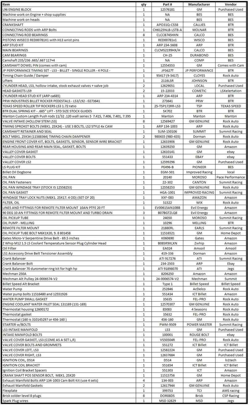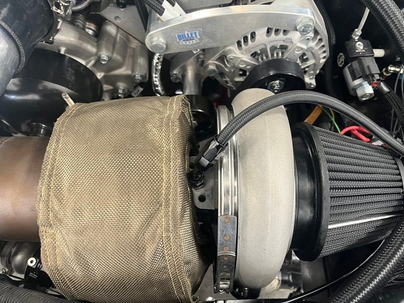 I purchased the car back in 2015. It was a H/C/I car living around 460 rwhp. The new setup is a 10.5:1 404ci forged L96 GM iron block, single turbo kit. Then engine machine work was done by BES in Indiana. The plan is to keep it as a street car for a few years with functioning heat, AC, full interior, living on low boost before the 10 pt cage goes in and it becomes a street/strip car. Most of its life will be on "low" boost living on the street. Maybe 1000 rwhp or so. This car will never see a 25 pt cage. 1200 rwhp should be enough to run 8.5 sec ¼ mile times.