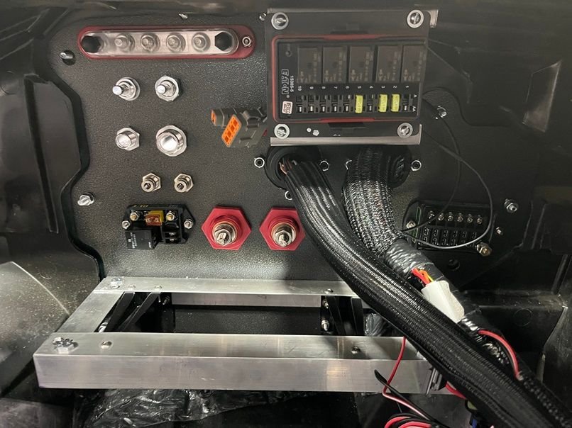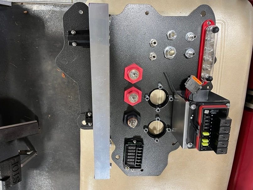 With no more room on the BMR delete plate, A 2nd Big Dog 1 6 way fuse block was added under the center console.