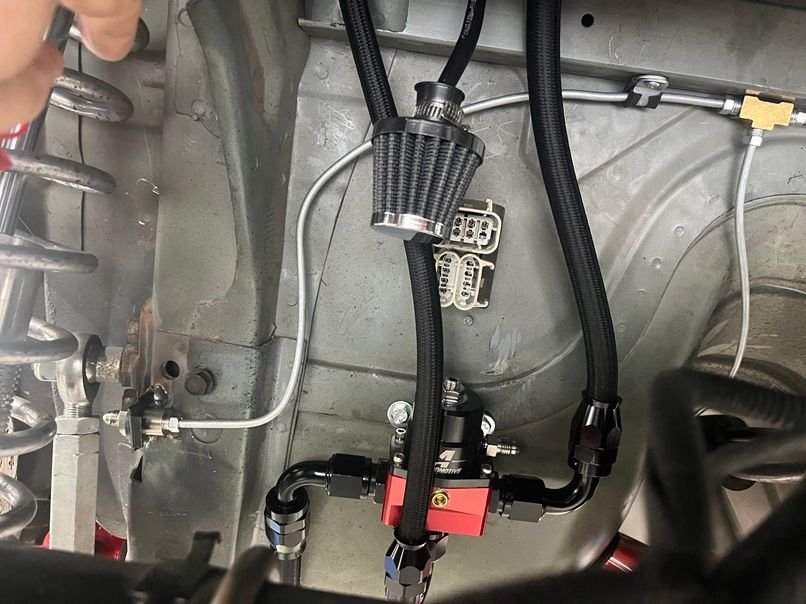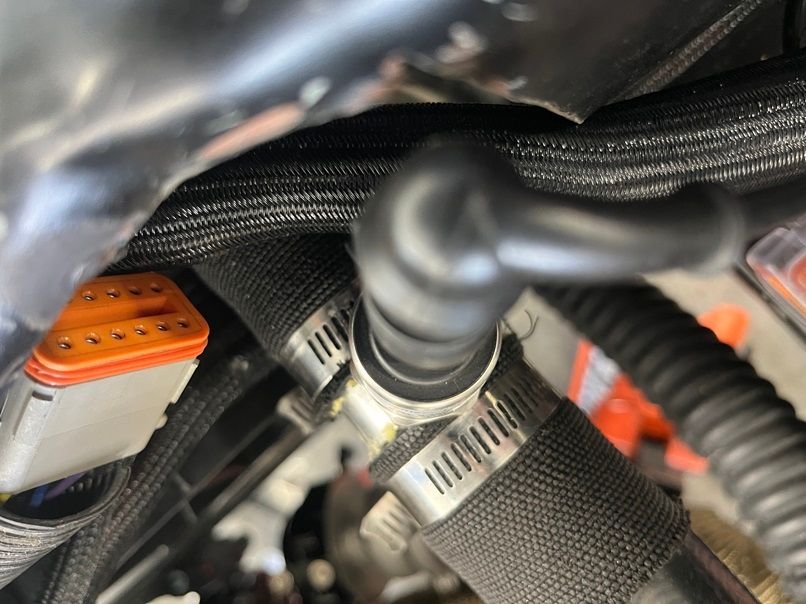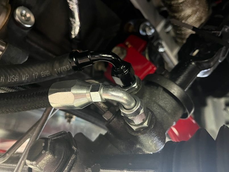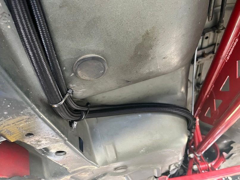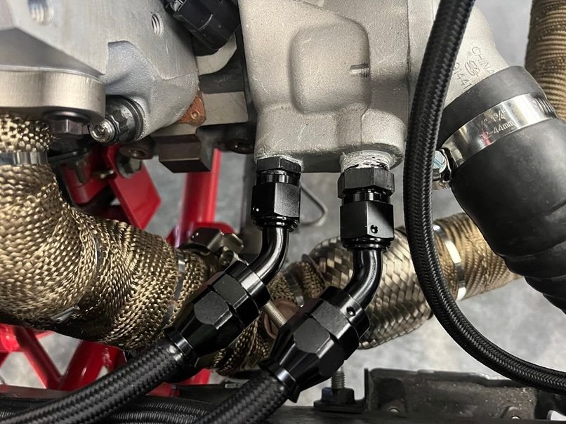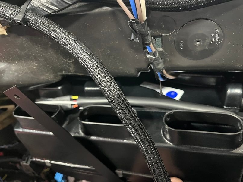 PTFE AN line on the engine bay side for the lines routing to the water pump