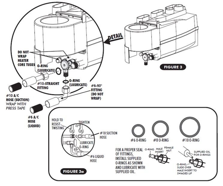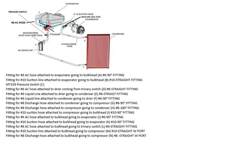 Unfortunately only 10AN and #10 AC threads are the same size. #6 AC and 6 AN threads are not the same and neither are #8 AC and 8 AN for the record. Because of this, one cannot use a 6 AN line on the inside for the high pressure AC line. One must use standard AC #6 hose and fittings. In other words, a four seasons 16746 adapter for the 6AN line isn’t going to work. The 16749 adapter for the 10AN line will work, which goes into the #10 connection on the evaporator.