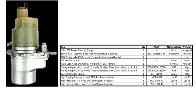 I decided to get rid of the factory power steering setup and switch to a Volvo S30 electric pump.