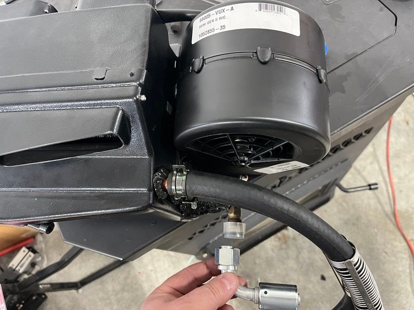 Standard 5/8 coolant hose on the inside for the evaporator