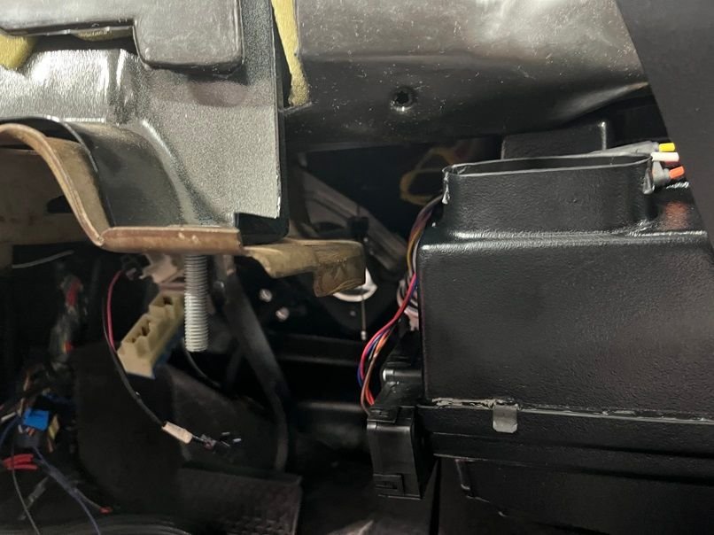 I knew that passing AC and Heater lines through a bulkhead wasn’t going to be fun, so I decided on bulkhead passthrough 100970 from JEGS for the AC lines and 5/8" Barb to -10AN 2-Port Firewall Bulkheads with AN heater hose conversion from Autoplumb for the heater lines. None of this stuff is found online, it all had to be figured out. The heater lines then needed to be reduced from 10AN to 8AN on the engine bay side, so I used WAN894-10-08-blk reducers from Amazon. Reason being is that the size of the fittings on the water pump are 8AN. (removed barbs and tapped them for 8 AN fittings)