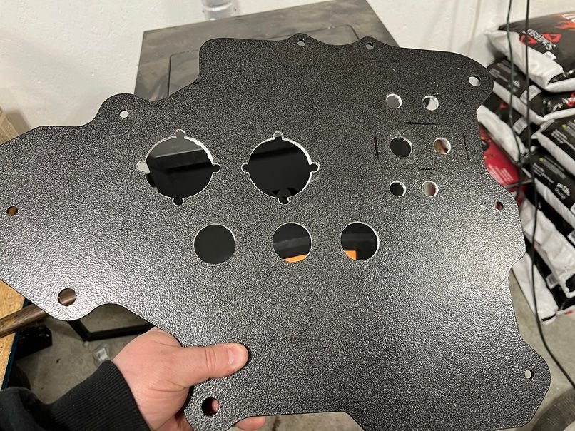 The factory HVAC system takes up too much room and needs to be replaced. I got the idea from JimTA, who I believe was the first one on here to install a Vintage Air unit in a 4th Gen Fbody. Jim also shared documentation on his wiring of the Dominator which saved me a ton of time! The Vintage Air HVAC setup is a much smaller footprint. The BMR HVAC delete plate is the go to for this setup. Look at the nice flat surface! What a perfect spot to mount a Holley Dominator and other electrical components! Oh wait, there’s room to run some Deutsch bulkheads? No point in feeding a full Holley wiring harness through the firewall when you can have every individual wire go through a bulkhead fitting for an easy quick disconnect system. The modding of the BMR delete plate begins!