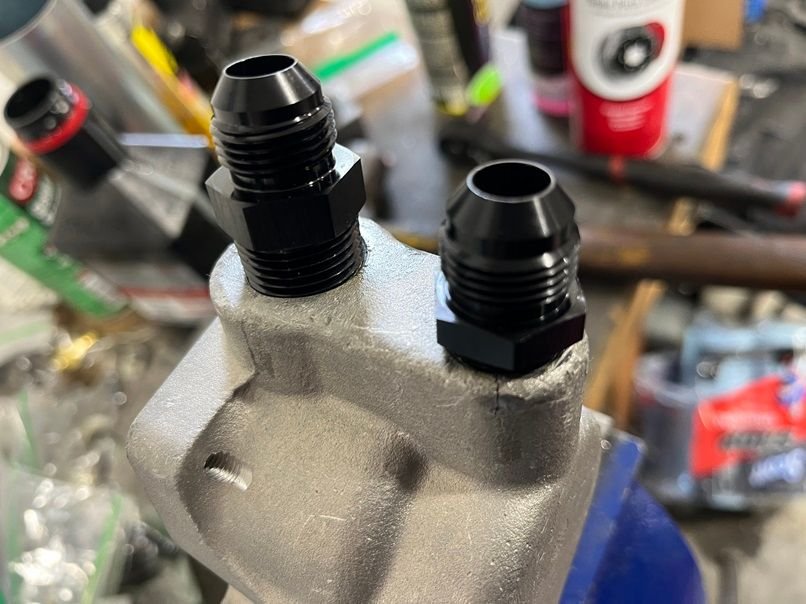 Fitting for line 2 attached at water pump (X) -10AN STRAIGHT