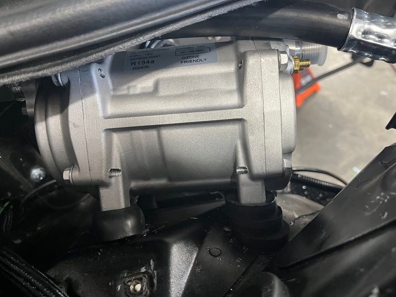 With much of the wiring out of the way, the HVAC system was next. I decided to go with an electric AC compressor ACTECMAX AC.100.3851 and a Vintage Air Gen 2 mini 66005-VUX-A. An electric compressor frees up the much needed room on the underside of the engine. This compressor uses POE 58 oil rather than PAG oil. The AC compressor pulls some serious current so an upgraded alternator is needed. I went with the Mechman 250A alt with a 2.9” pulley.