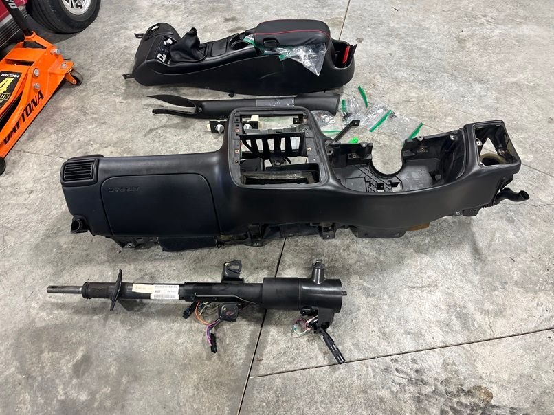 Time to put the front on jack stands to begin pulling the interior so that I can wire up the electrical system. Holley Dominator, Tinker Dash & 3.5 Holley Screen, custom relay/fuse box, retain the BCM and internal fuse panel and body harness. Drive by wire. No need to complicate things with a PDM, just integrate the Dominator into the existing system. Factory, cruise, EGR, ABS, traction control… all that stuff has to go. A much more detailed document outlining the electrical portion of this build can be found here: