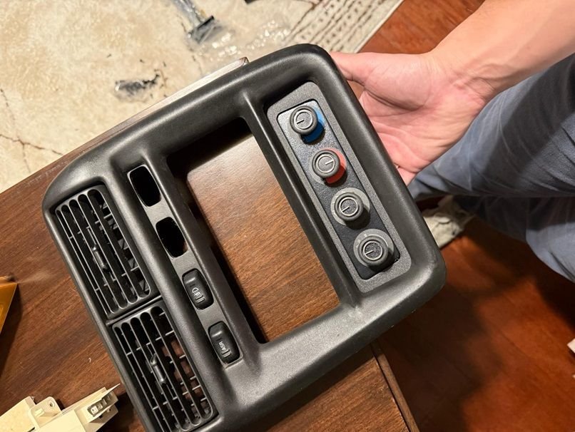 Next came the custom 3D bracket for the Vintage Air 49200-RHA HVAC control *****. Had a friend print this up for me. Turned out perfect! Also I purchased a custom holley 3.5 screen 3D printed holder from Etsy that replaces the left vent.