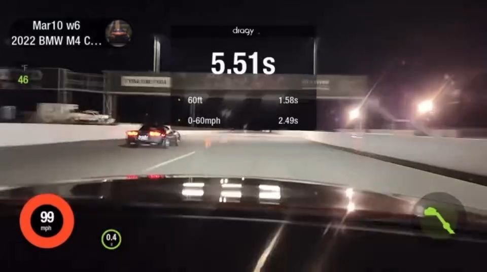 I did get as screen grab from one of the cars that I raced, obviously it's not going to be 100% accurate since it depends on if we left at the same time, slight delay in the timer starting, etc but it gives a good idea as to what it could be around.