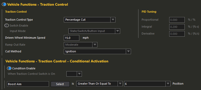 Here's a neat trick, you can use a single rotary for both so to speak. You can setup a trigger for your traction control to only activate above a certain rotary position, and also have that same rotary reference your boost settings. As an example, rotary positions 1-6 would be your boost curves with TC off, 7-12 would be those same boost curves with TC on. Or you can even link it to various TC slip profiles.