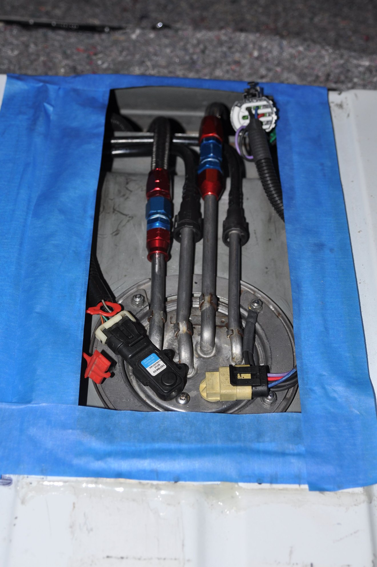 So what to do with each ground wire from each pump? You will have to add a ground plug on the fuel assembly hat and attach each ground wire from each pump to it. And then attach the ground to your reconfigured external wire harness on the atmosphere side.
