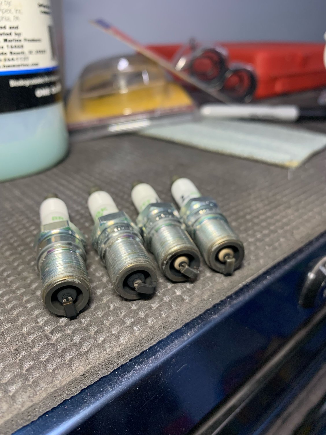 Parked it, next day I yanked the plugs and well...y'all be the judge but I think two injectors ain't flowing the same as the rest!