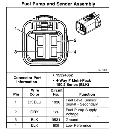 I know one of them should be for the fuel level and one powers the pumps to injectors. Not sure which one is which though.