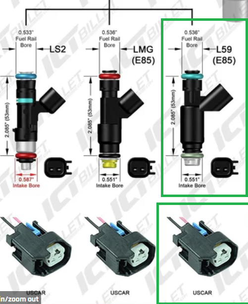 Baseline tunes I pull for flex fuel trucks are at 33#/hr. Marketing data online shows 30#/hr. Then there's newer flex injectors at 58PSI which flow 35.4#/hr. I haven't a clue what these things actually are I need accurate 100% reliable injector characterization for a 2002 Flex Fuel Tahoe AND what regulator is spec'd for that 2002 L59. It seems there's so much information online you just end up with what you search for. Additionally, parts catalogs don't distinguish between flex fuel pressure regulators L59 and regular pump gas LM7. I know the connector is a EV6 connector.