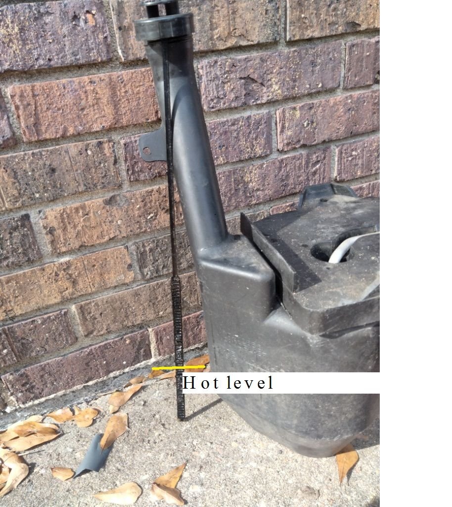 Haven’t added anything to the now empty resovior. Except the little bleed over though resovior tube when filling rad. so I will check dipstick I'm not expecting much probaley less than half a quart.