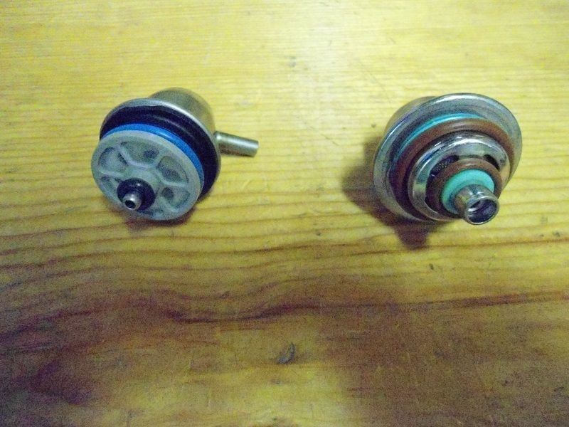 Here is a picture of the fuel regulators. The left is the non flex "T" code regulator and on the right is the flex fuel "Z" code. The fuel rails must be different. 3/8 supply and 5/16 return to tank on the flex 2003 and 2004 GM & Chevrolet trucks as far as I know.
