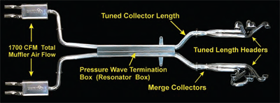 General consensus is tuned collectors at right diameter and right length with a box of the correct volume is what is needed. Once you do that, make sure the mufflers you use flow enough CFM for your motor and "theoretically" the exhaust system after the box is "invisible" to the motor. Meaning it is not seen as any type of restriction.
