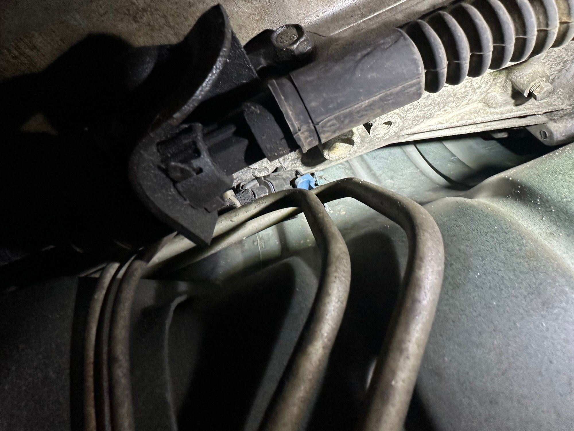 Thats a tight spot for sure. What you can try maybe, is once you have the new sensors. Cut the wire off from the end of the old sensor while its still threaded in, then maybe use a long screwdriver or pry bar to pop the harness end of the connector from whatever its attached to. That should give you enough slack to let it come lower and then unplug it