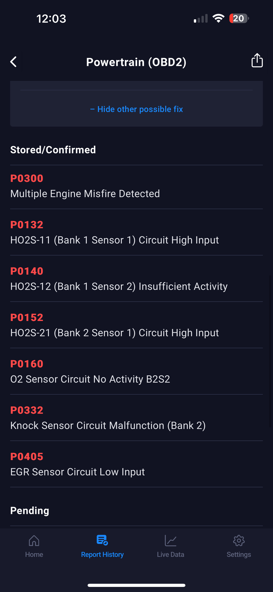 I got a 2000 Camaro z28 43,000 miles it came completely stock only thing I did was install long tube headers y pipe, msd spark plug wires, and ngk spark plugs it worked fine when I threw them on till like a month ago my car started backfiring when I accelerate fast I changed the spark plug wires(too stock) got new spark plugs and changed out the knock sensor cause I have a obd2 bt scanner that said it might need swapped out but it still backfiring any clues too why it would be doing that? the picture shows what the obd scanner says also the long tube headers did take away 2 02 sensors so I kinda figured that what some codes are.
