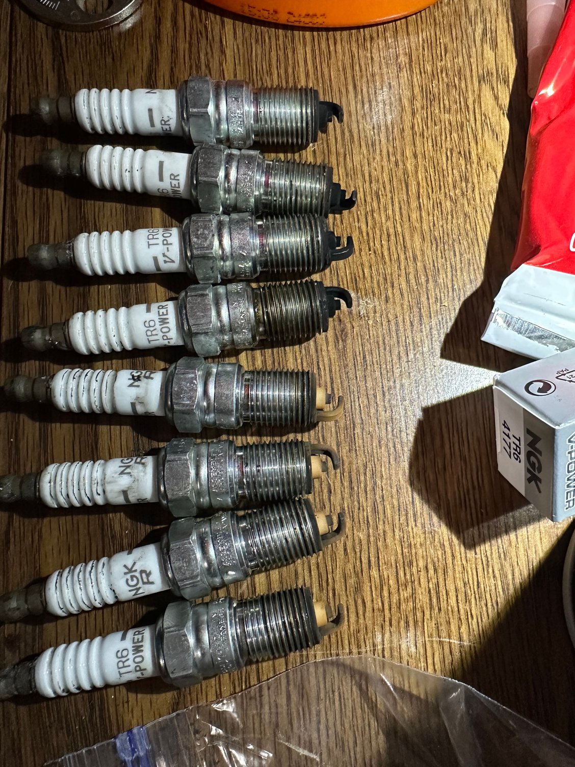 Pulled plug 1, and it was all carboned up. Went to the auto store and got all new plugs. Now, I changed all my plugs this spring, less than 10k miles ago. 1.3.5.7 were all full of carbon. Then I got to the passenger side and 2.4.6.8 are all orange? I have no idea what’s going on, especially since they are uniform on each side.