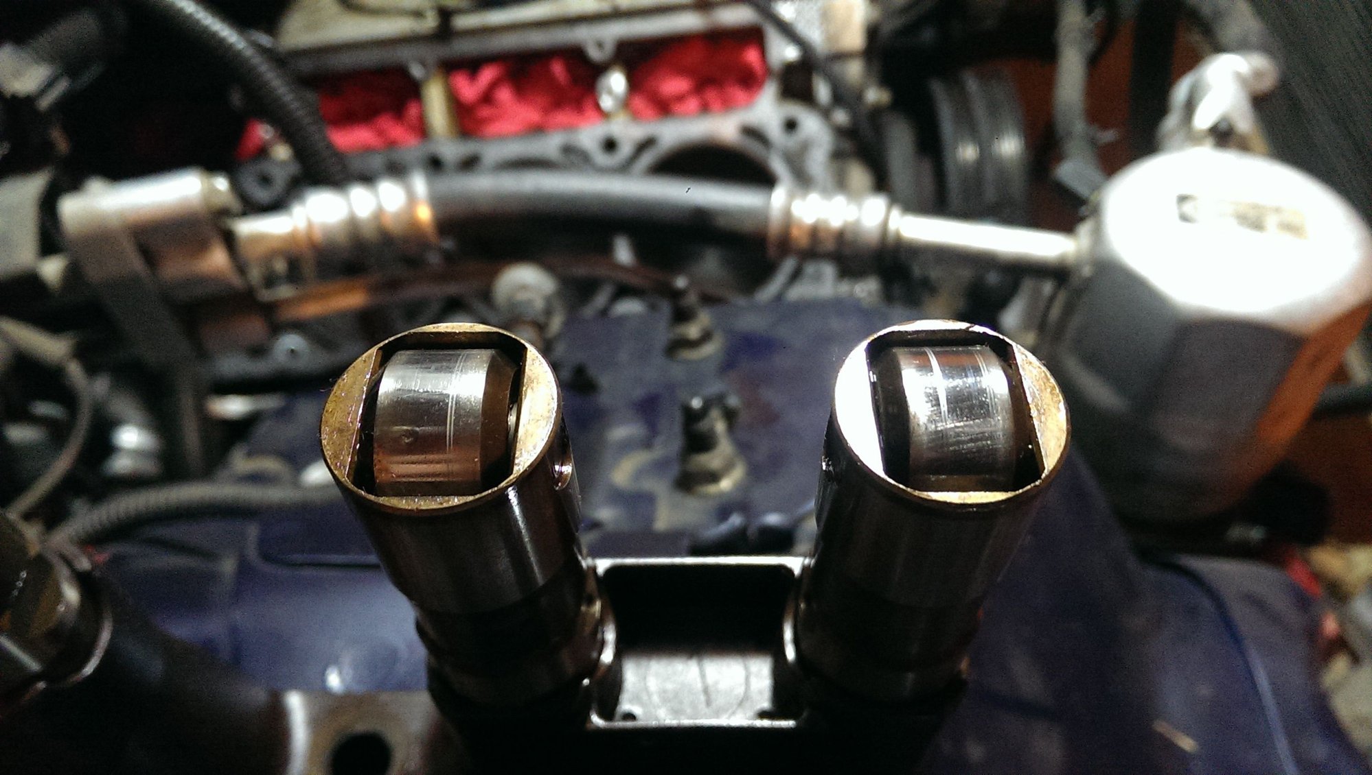 Alright guys, I've been chasing what I thought might be a possible lifter tick. I had a tick that could be heard once the motor started to get up to temp, and would change with the RPM. shortly after I noticed it, I had a bit of a loss in power. Drained the oil, and opened up the filter and didn't see anything. Finally got the heads off and noticed 3 of the lifters were like the 2 above. I also noticed some exhaust marks from the headers (recently replaced the gaskets because I thought that might be the issue first). Other than this the lifters look fine and don't leak down when I pressed with my hands. Does this look like it might be causing my issue? Is there anything else I should check?