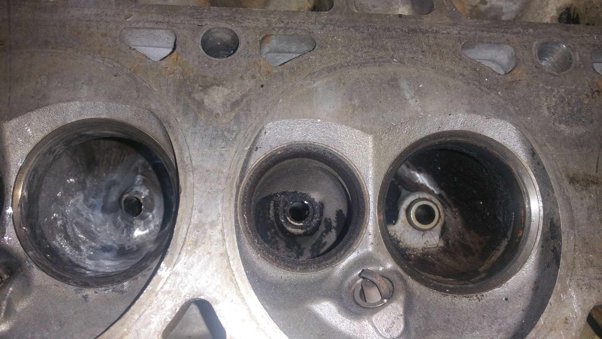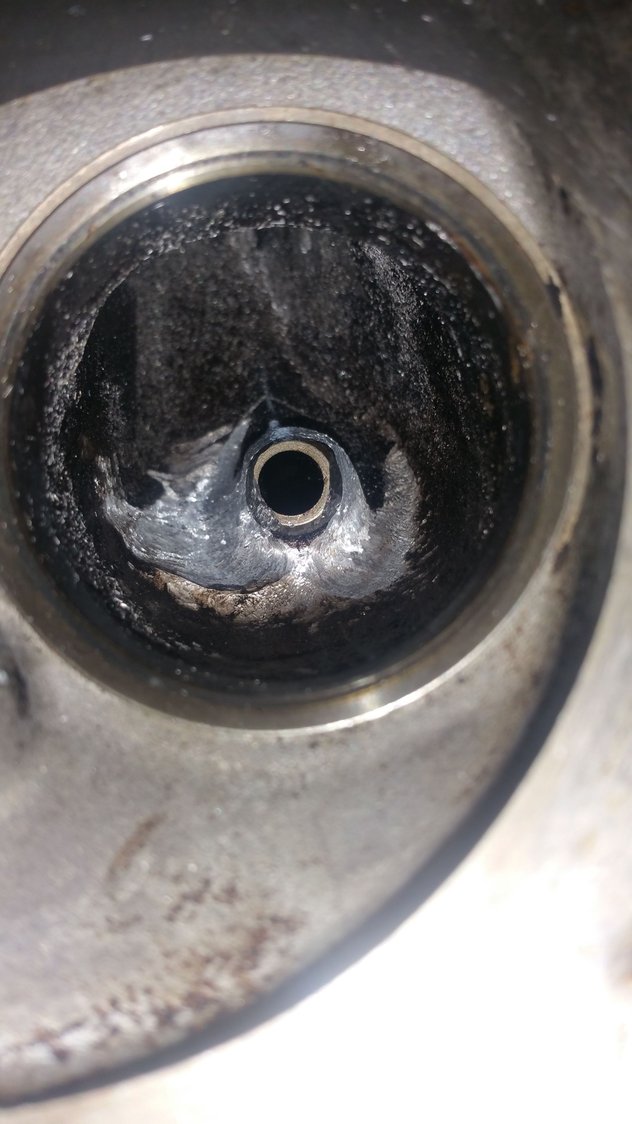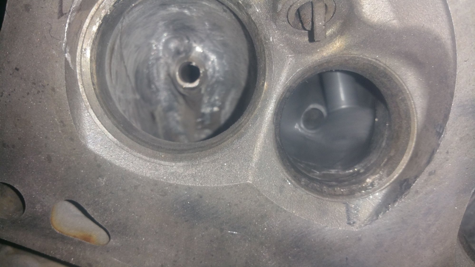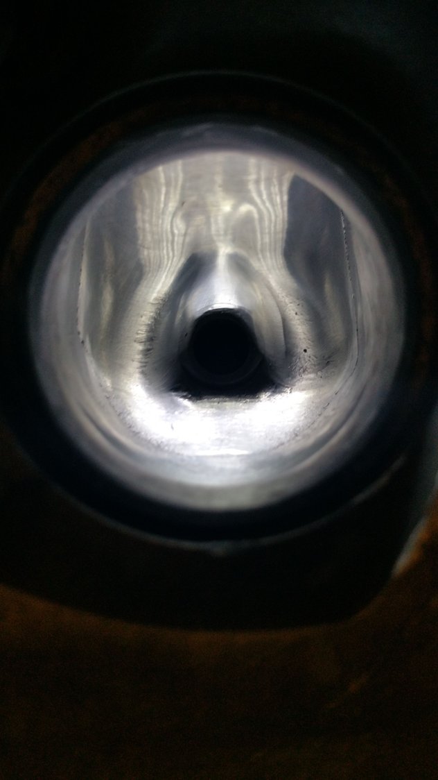 moving on with life got up this morning and started back on the exhaust port .as you can see in the picture what I have done was take off the ridge of the exhaust port seat with my deburr bit.I just kind of worked my way from the outside edge on to the center.the exhaust port is extremely shallow compare to the intake port so you really have to be careful and it really doesn't take much time to remove the material compare it to the intake port.