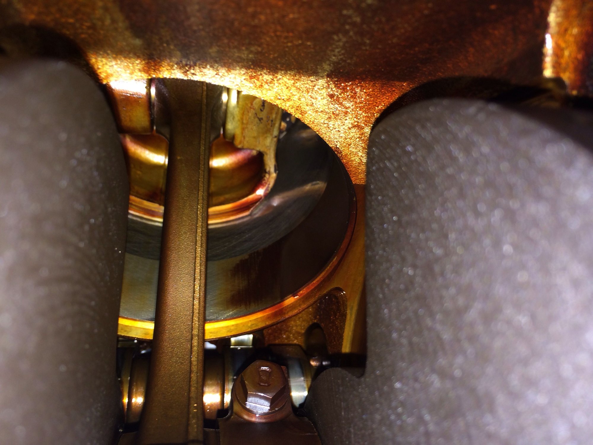 Ok the motor is rotating a little better. Maybe 270 degrees total. It really starts to slow down / bind when the piston skirt gets down to where the cross hatching stops and the brown / rust begins... I can feel it pretty easy with my finger... Time to hone right?