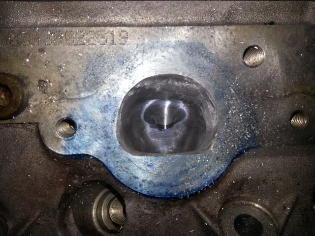 I then feathered that .060 back to the coolant bump. I don't know if what I did hurt or helped, but it seemed to me that the exhaust would be taking a slightly more direct route to the header.