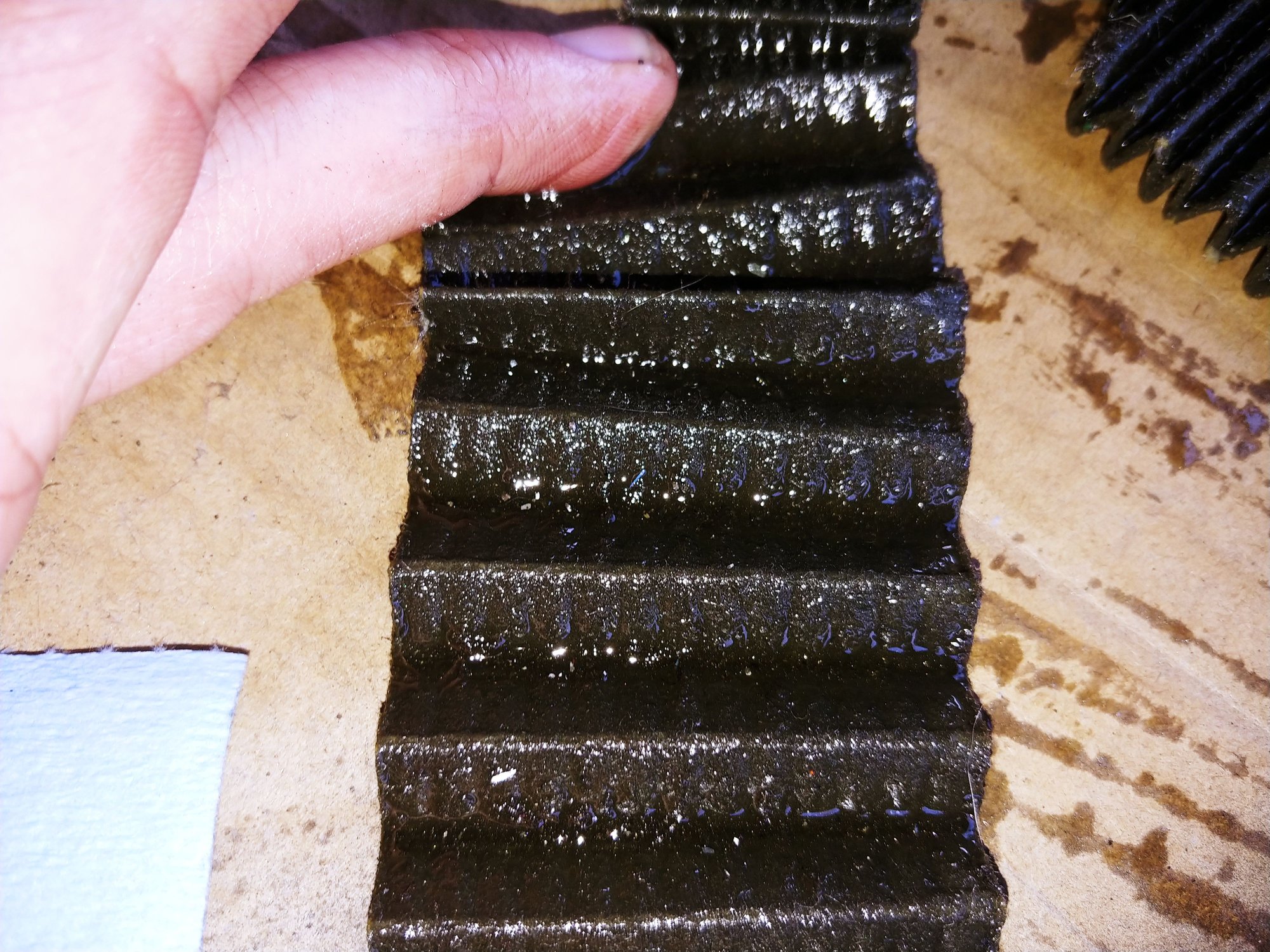 So naturally, next step was to cut open this filter as well. Which revealed the following... I am especially concerned about the sliver and the copper flake I found. This told me that something was wrong.