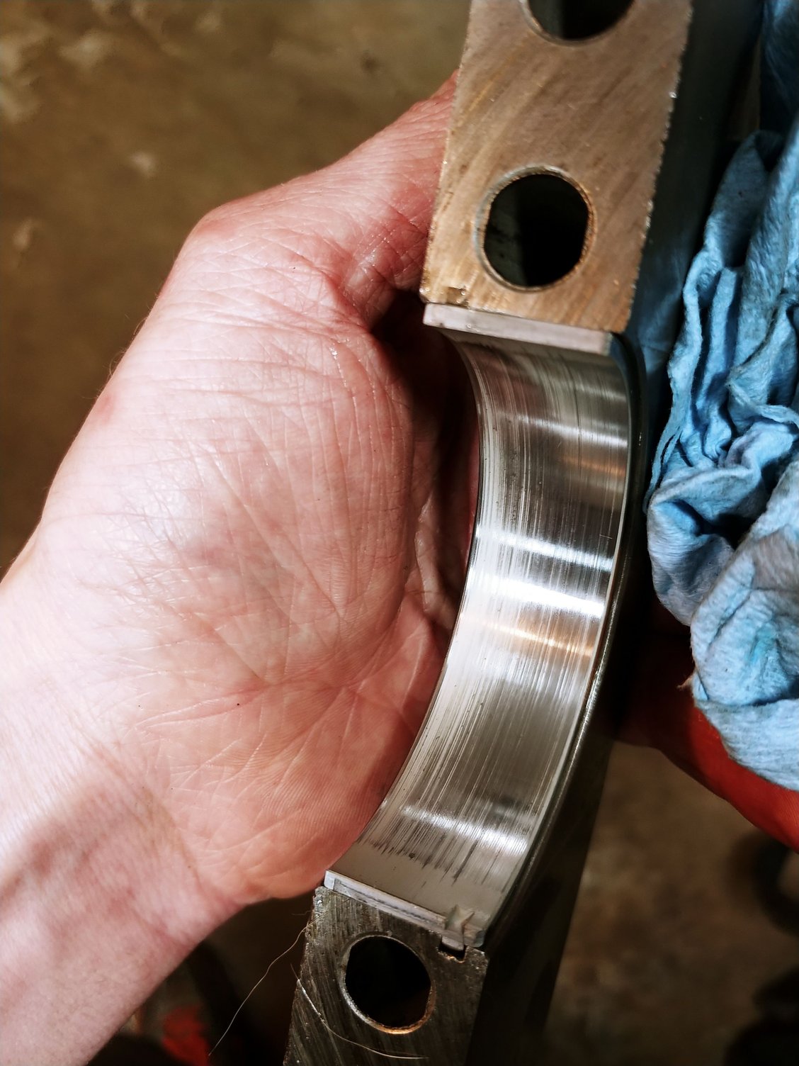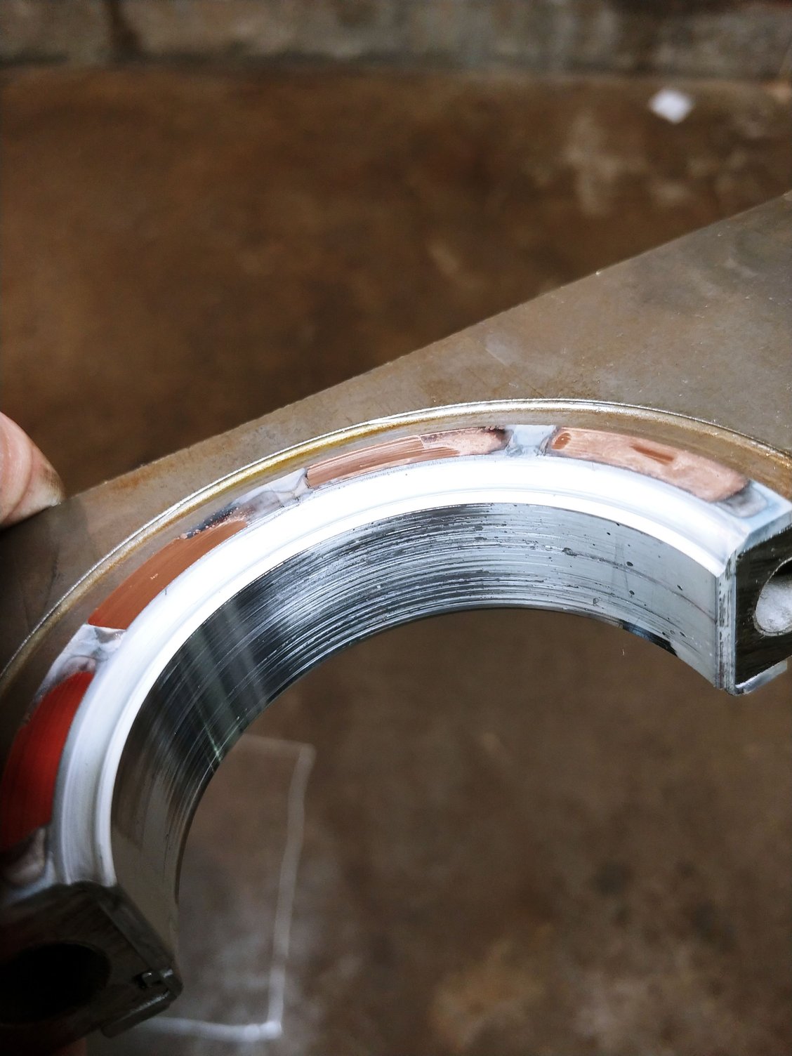 Thrust bearing next. Not sure what to make of this, doesnt look perfect, but doesnt look aweful either. Maybe a copper flake came from one of those thrust surfaces?