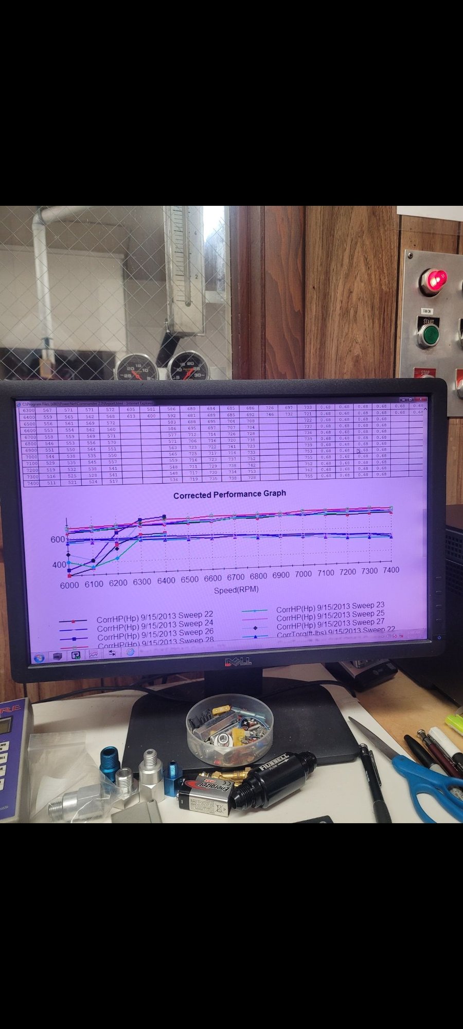 after swapping holley off and trying his fast.fuel injection only to have to go back to holley as fast would only fire 4outer cylinders we put holley back on and switched to batchfire and seemed to.clear up. So again made a pull clean to 6900 then engine just lost ignition we swapped in an ac Delco crank sensor and had no more issues there. So went up to 7700 rpm but found hp to stay in the 715hp range.