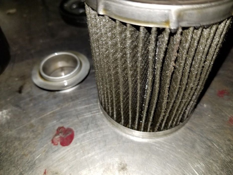 On the second oil change, I stopped in a gas station and when I restarted the motor the pressure fell to 21. I carefully restarted the motor and the pressure retuned to normal. Assuming that the bypass opened, I drove home and changed the oil the next day. I opened the filter and found nothing unusual. On the third oil change, I noticed the pressure needle pulsing at idle. It pulsed for about 100 miles and I decided to change the oil again.