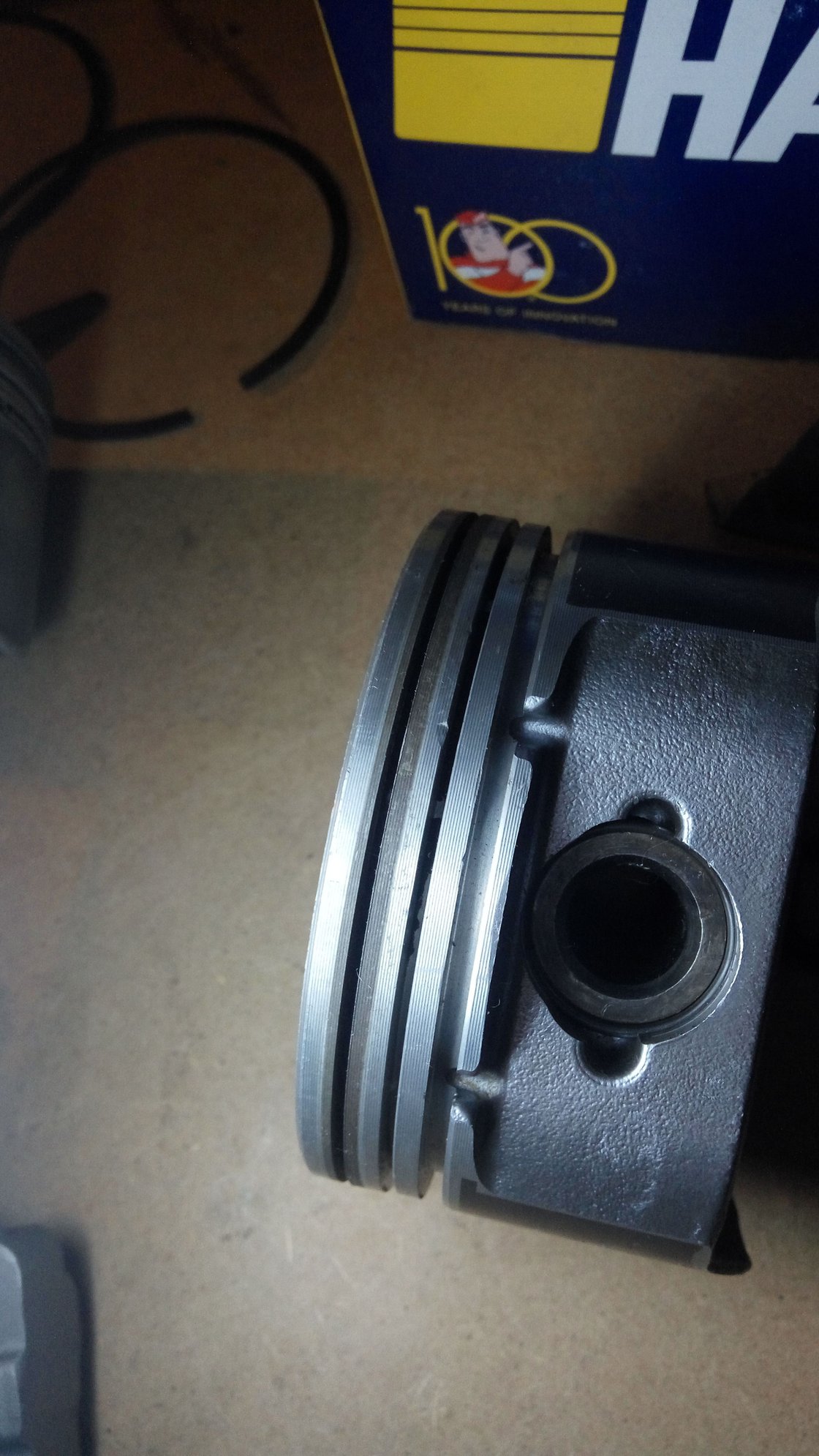 You’ll need to remove the indentions that protrude into the ring lands with a small file. It’s very important that the rings are able to spin freely until they seat, as well as move freely vertically for sealing purposes.
