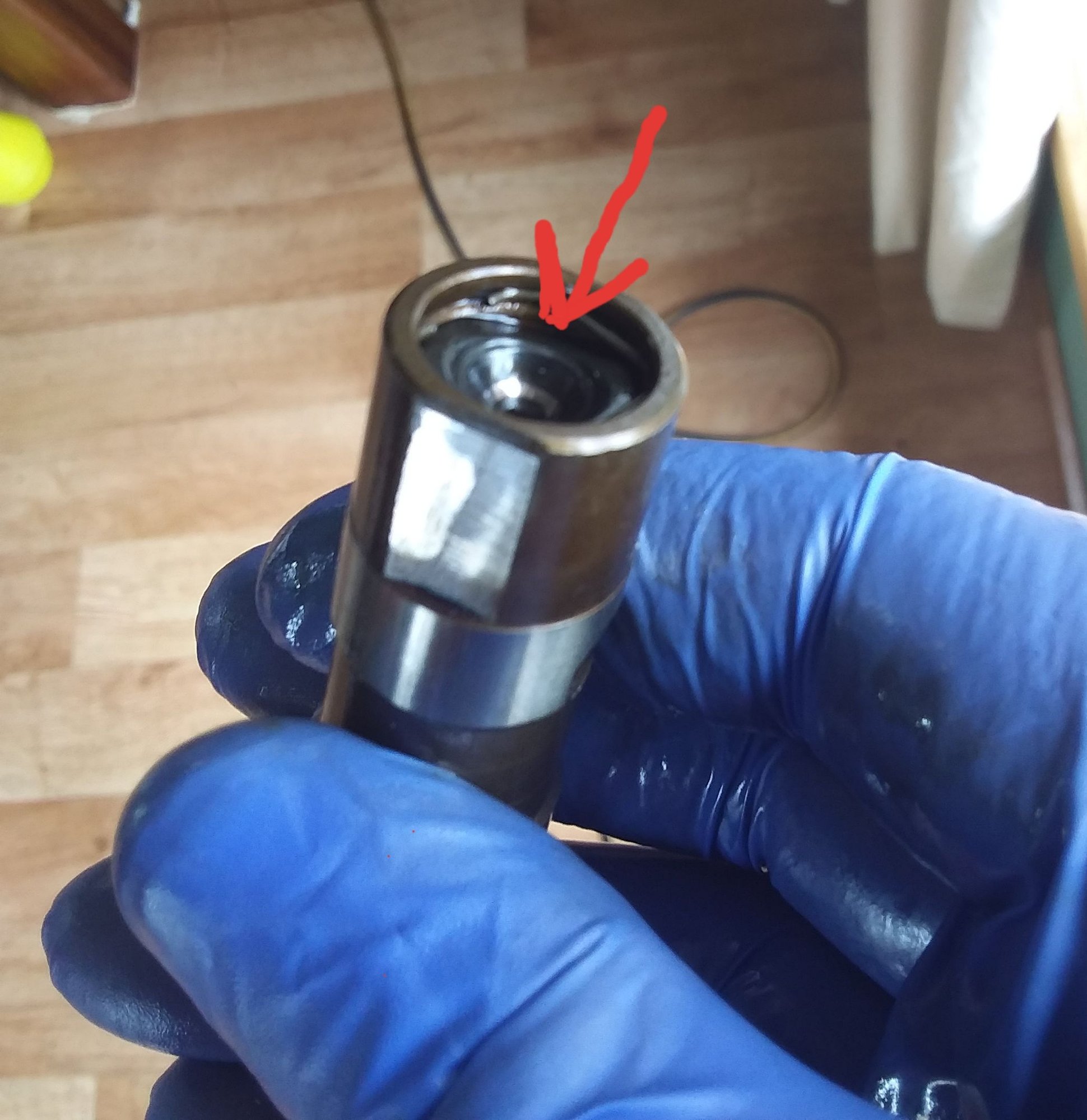 ​​​​​​On this subject previously when I ran my stock LS1 lifters with a BTR 219/224 .551 lift cam I didn't check my preload and noticed on disassembly it took five to six turns of rocker to take up preload and this below in pic was the result after running it for about 7000 miles. There was no ticking or sign that anything was wrong.