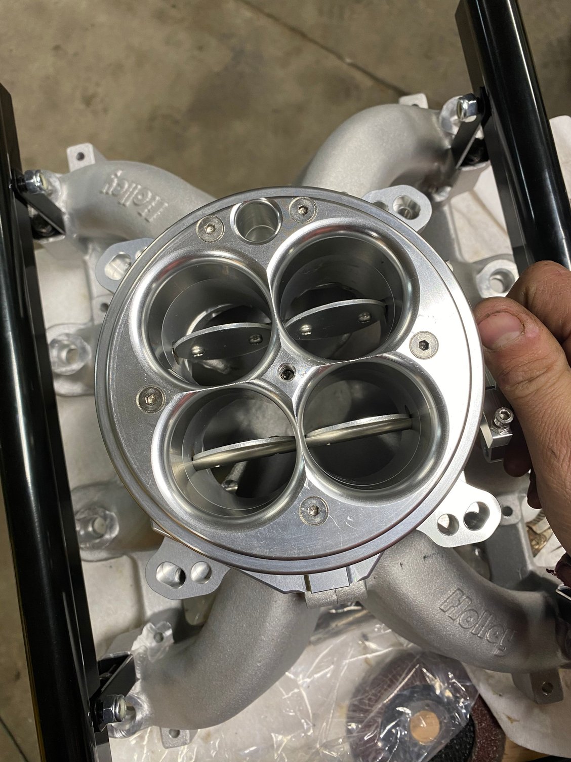 I'm doing a Super Vic / 4150 tb on mine this week as an experiment. Intake should be here tomorrow but i spent some hours prepping the TB which arrived this morning. I grinded down the throttle shafts/screws some for more flow, fitted the sensors and then re-routed wiring etc to the sensors. I'm going to cut a nice hole in the hood and run a velocity stack so it can breathe properly.