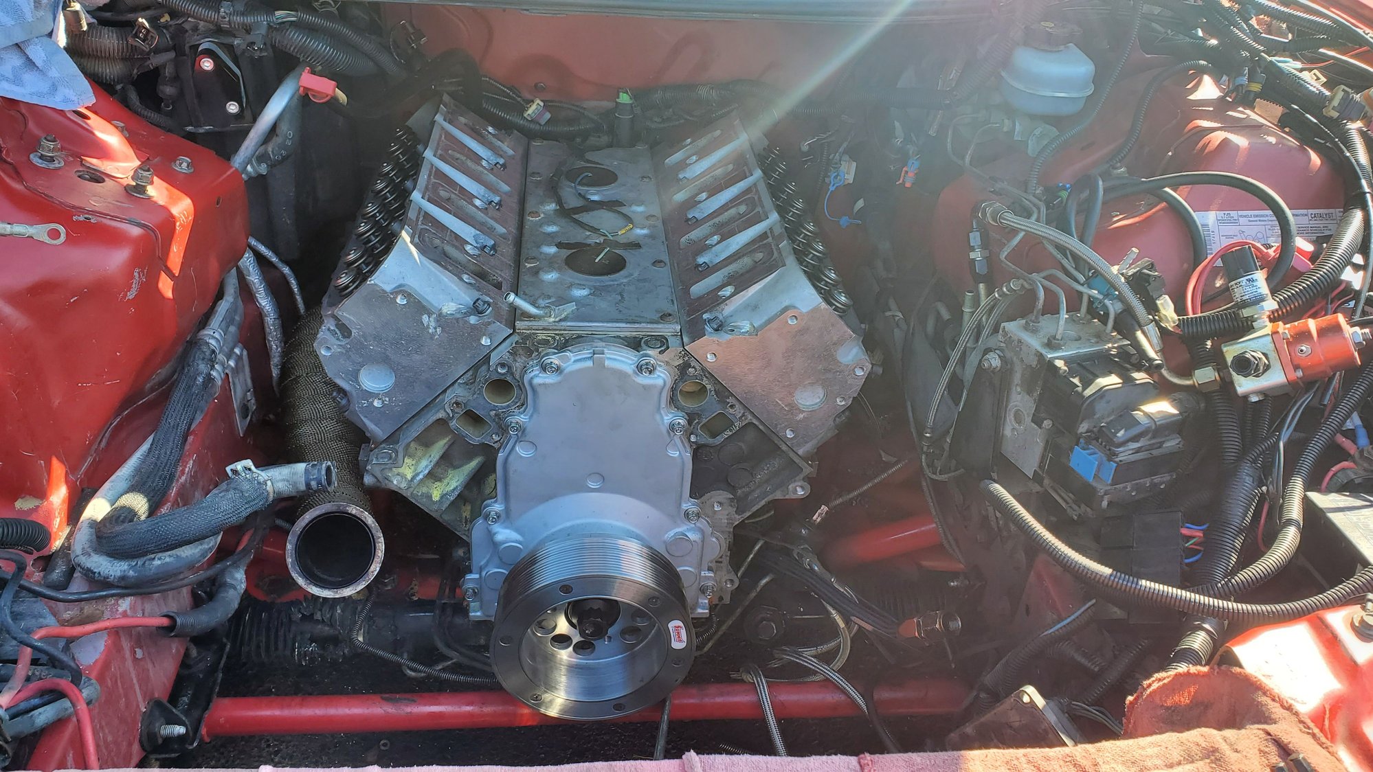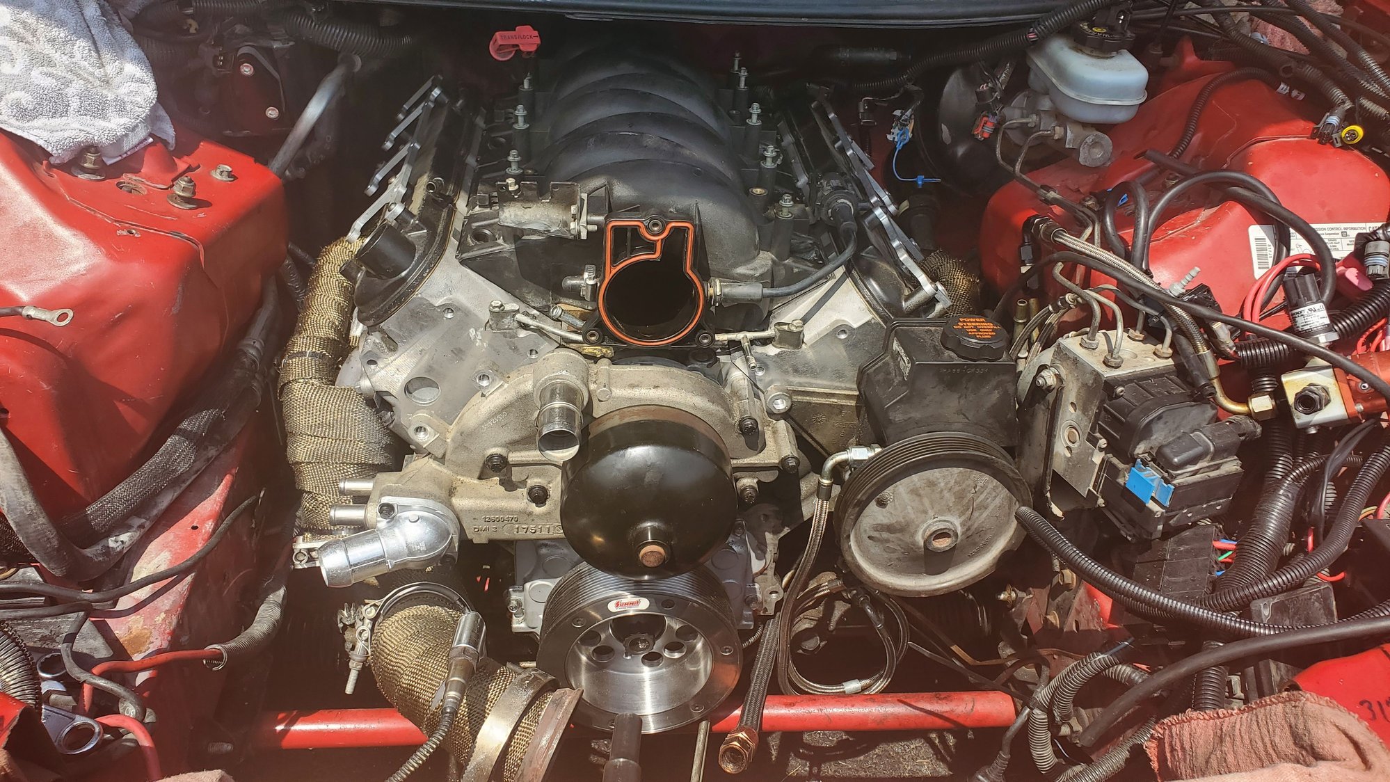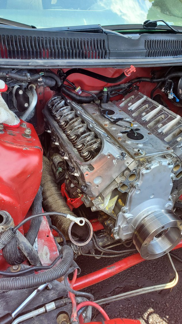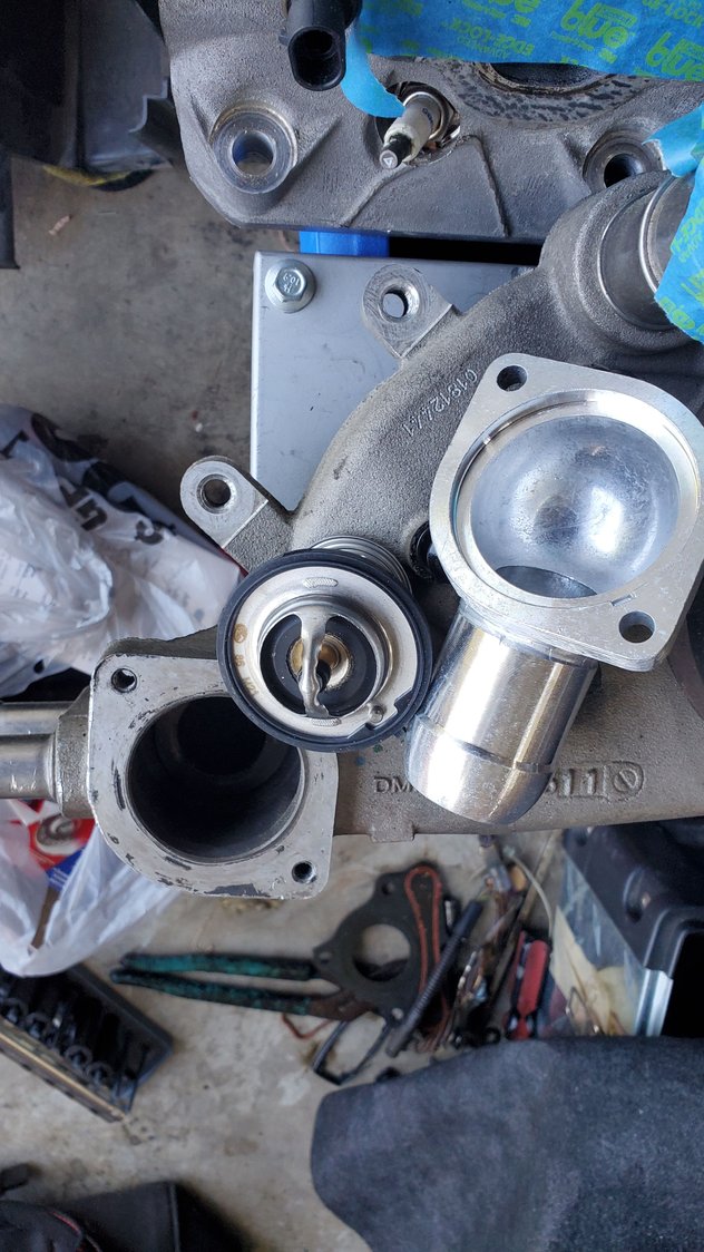 had to wait on some gasket spray and an newer style ls thermostat housing soni can finish buttoning up the too half.
