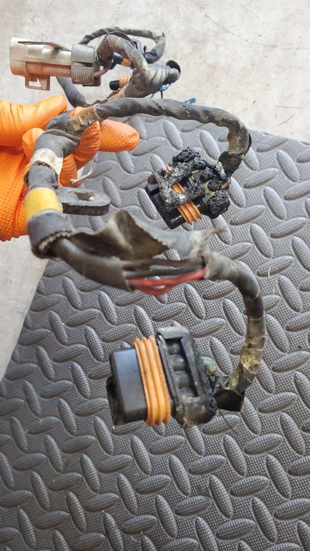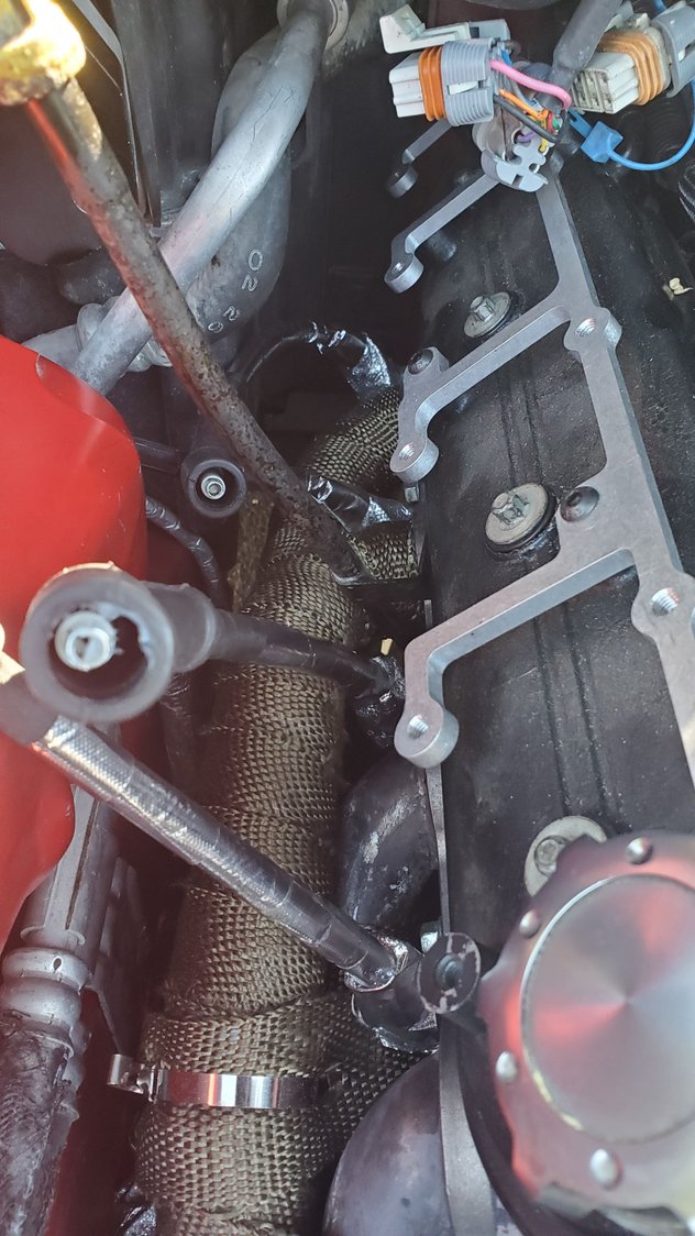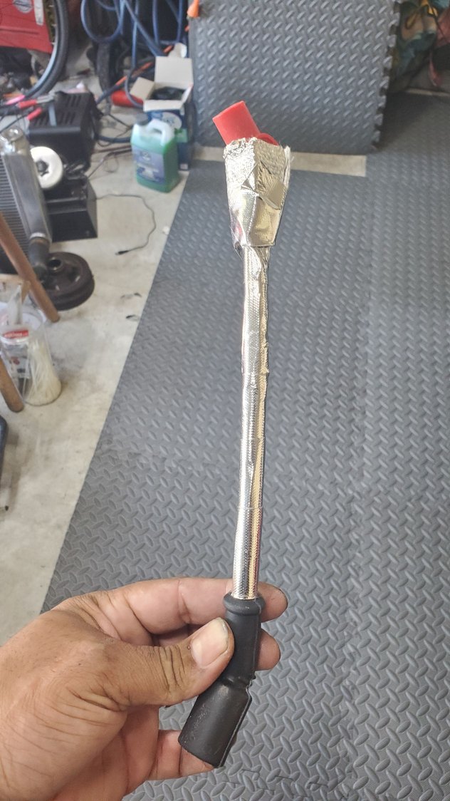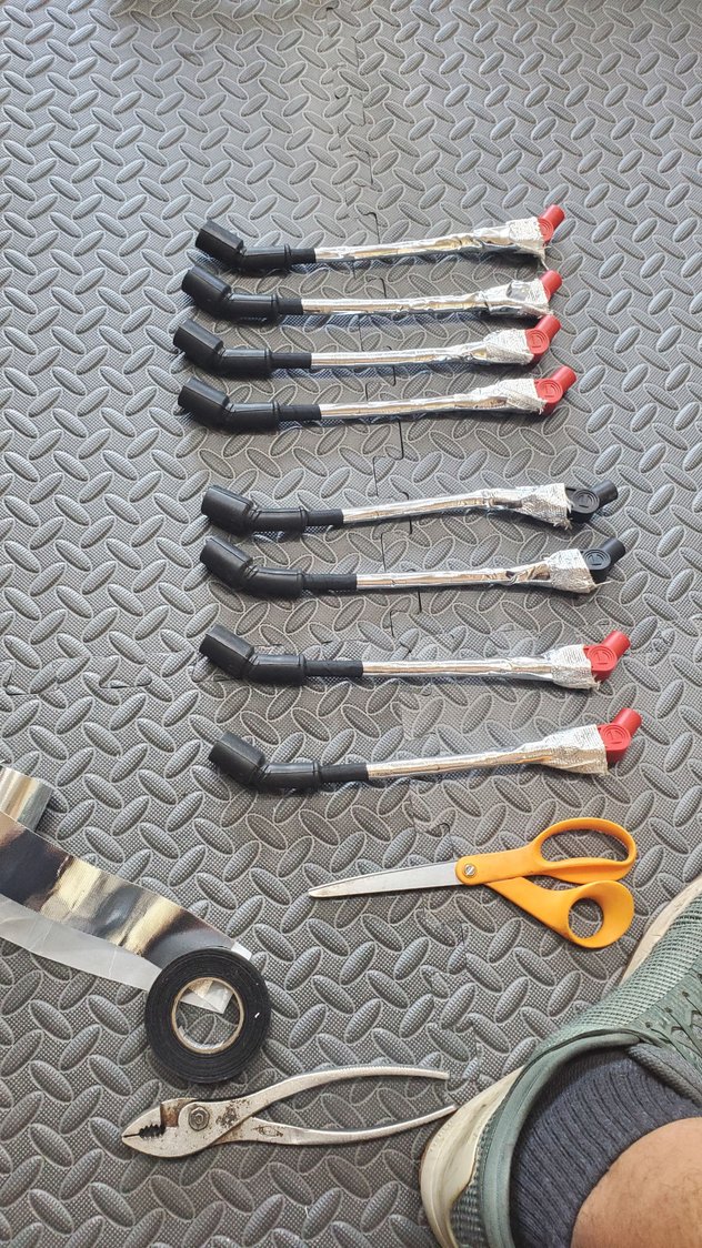 so yeah, rhey got a little toasted from fire before. not enough to destroy them, but enough to be a possible issue. this one took most of the damage so some cleaned up replacments came in today. had to make sure i had the right wires in the right spot. the sheet provided was a little confusing at first, figured it out as the firing order. not too bad looking, and matches the harness now nice and tucked in and done with that. now to fighting this bad boy back onto the driver side manifold and merge pipe flange 😡