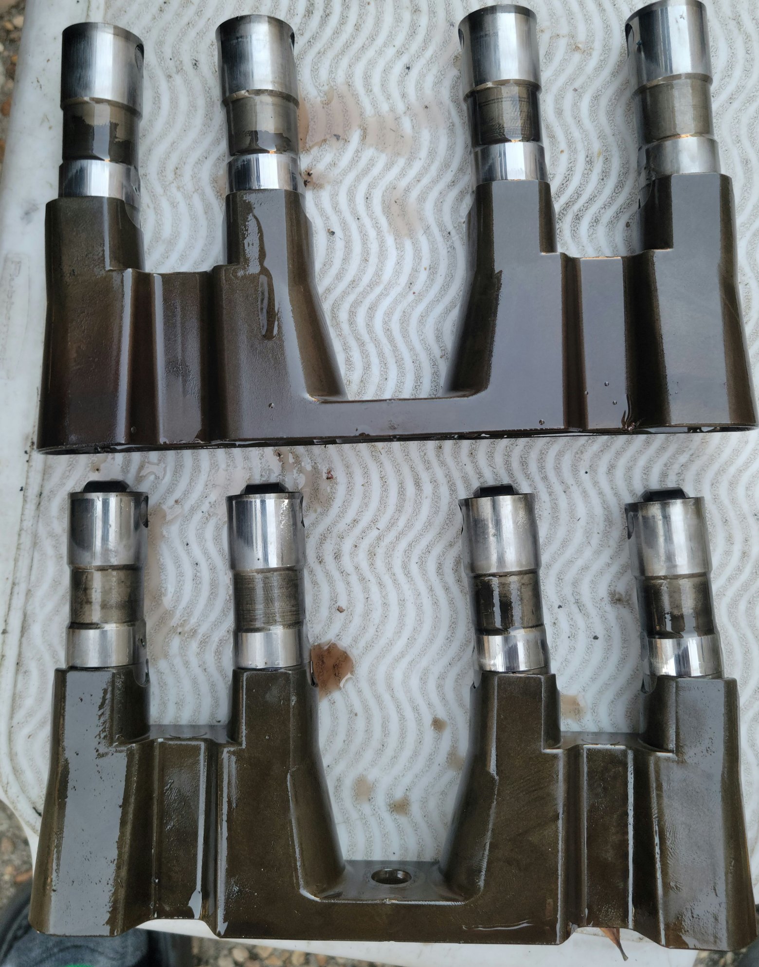 yes I removed both heads, the lifter trays are very loose on both sides but the drivers head is very clean and fresh looking where as the passenger head has alot of like black carbon build up around the valves and the springs