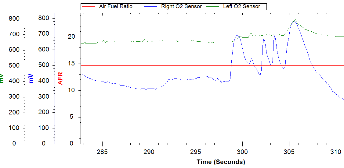 I tracked both O2 sensors as well as the AFR (Air Fuel Ratio). I've included a snippet of the graph below.