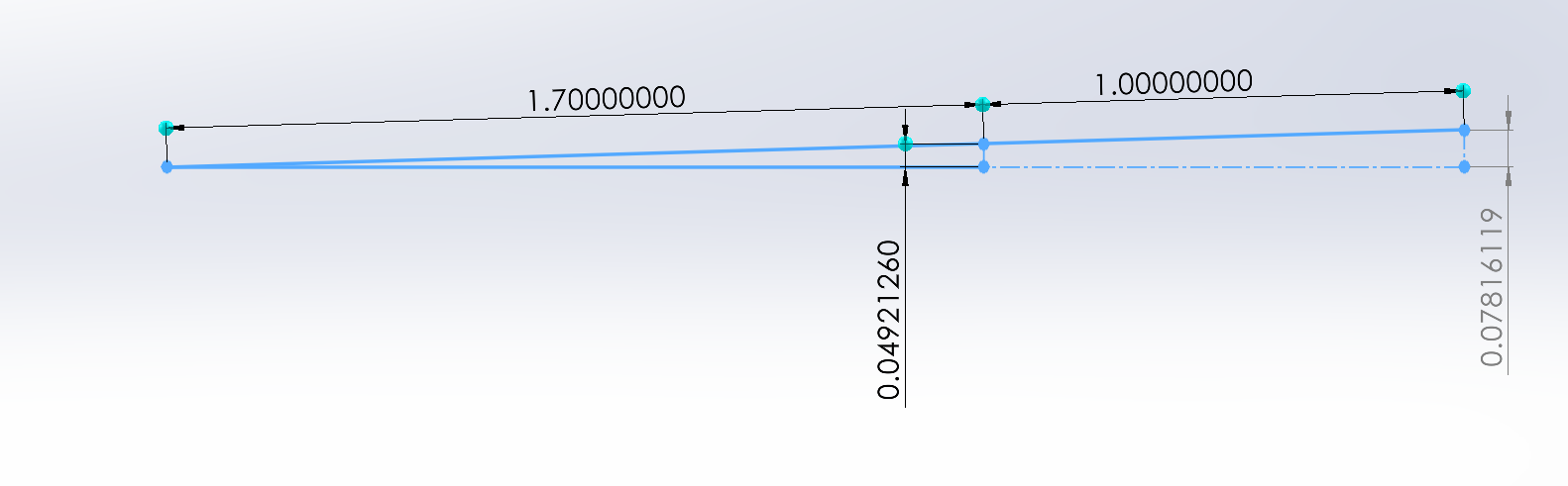 Here is a drawing I made of the rocker arm, as the rocker arm is a ratio, the exact lengths of both sides do not matter.