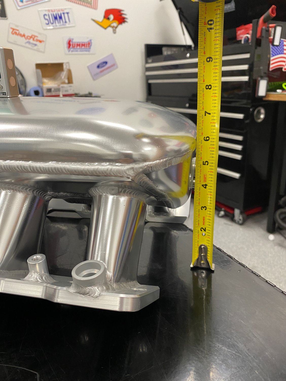 - The difference is the whole plenum is dropped over the runners. The underside of the plenum is only 1.500" above the valley vs. 2.900" above the valley with the Tall-boy. The runner protrusion into the plenum with the Lo-boy is 2.250" vs. 1.500" with the Tall-boy. This means that torque with the Lo-boy isn’t going to be *that* much down on the Tall-boy. Also 12.85 lbs. without fuel rails for a lot less weight than cast.