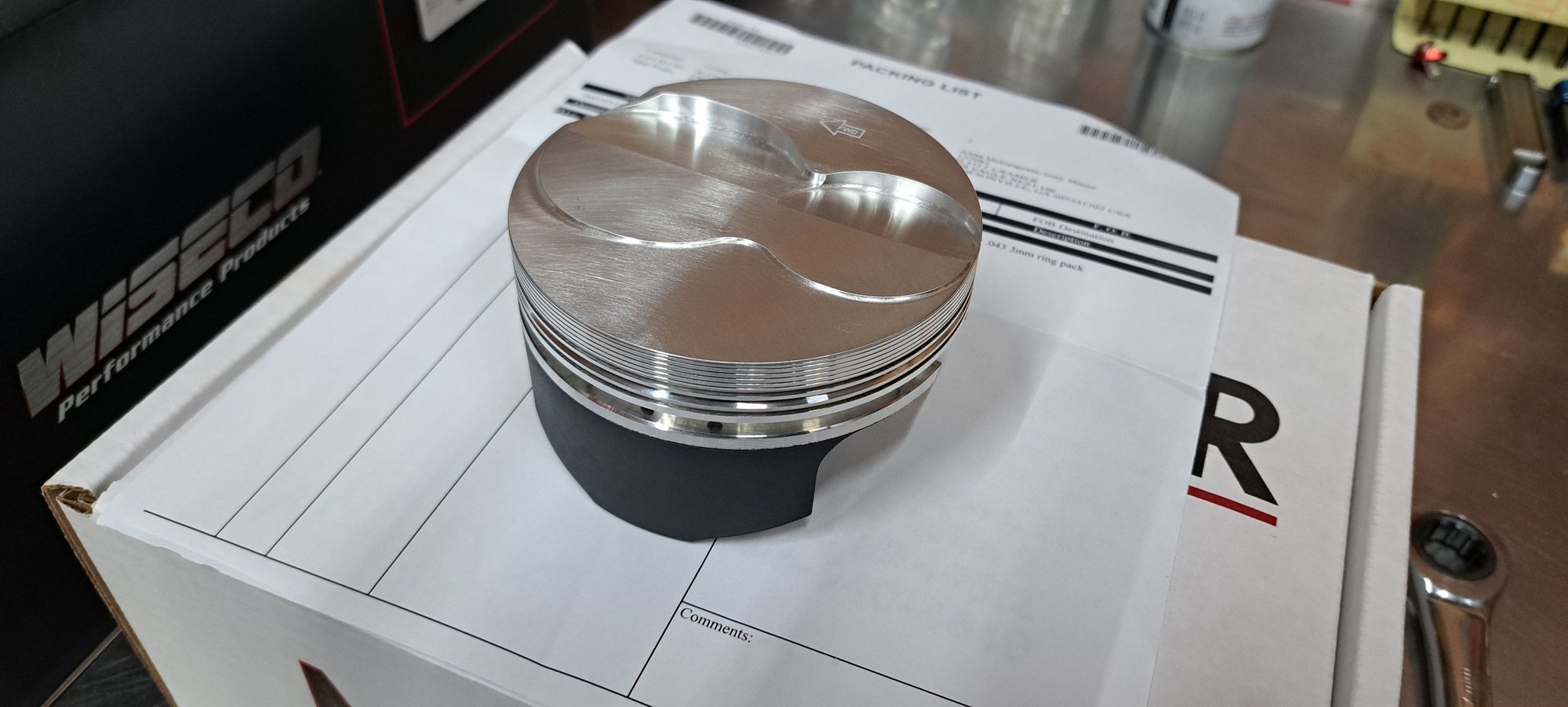 Thanks for the props. I had these custom built 15 weeks ago or so. I spec’ed the dome design, along with Tony, to work best with what I’m building here. I had no idea Brian ever had any input on this design, although I’m not surprised. He’s a smart guy. Here’s another view of this Oreo eating beasts piston…