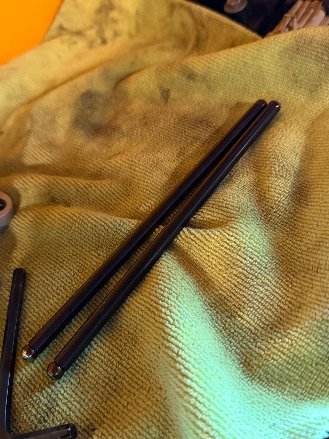 I pulled the push rods that are in it, lucky me there’s absolutely no marking on them so by tape measure, they are 7 11/16 exactly. That comes out to be like 7.68 that seems awfully long? Which throws my thought that the push rods were too short causing noise right out the window lol