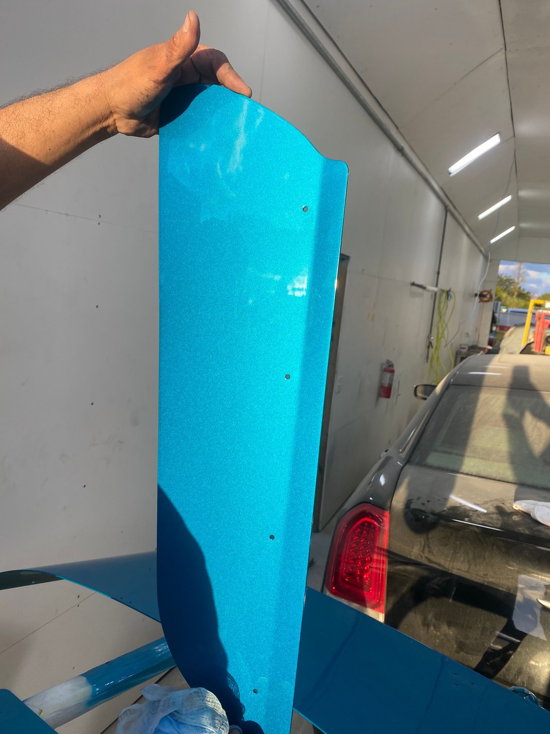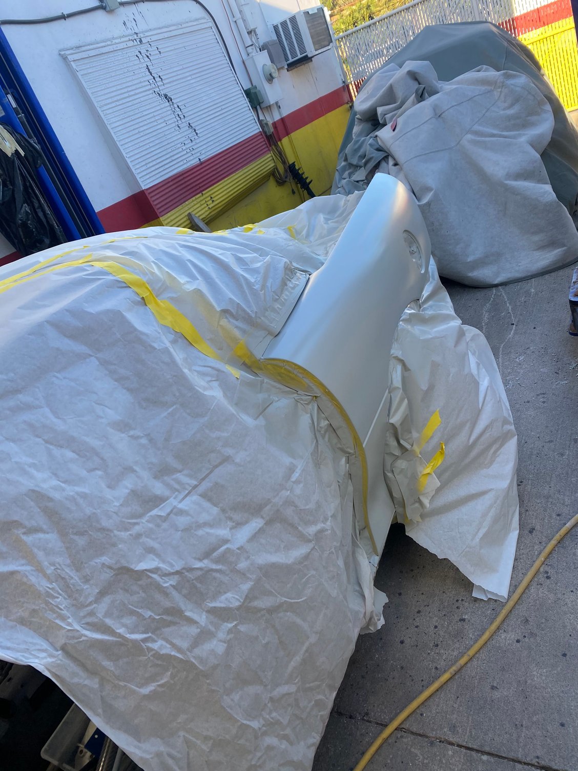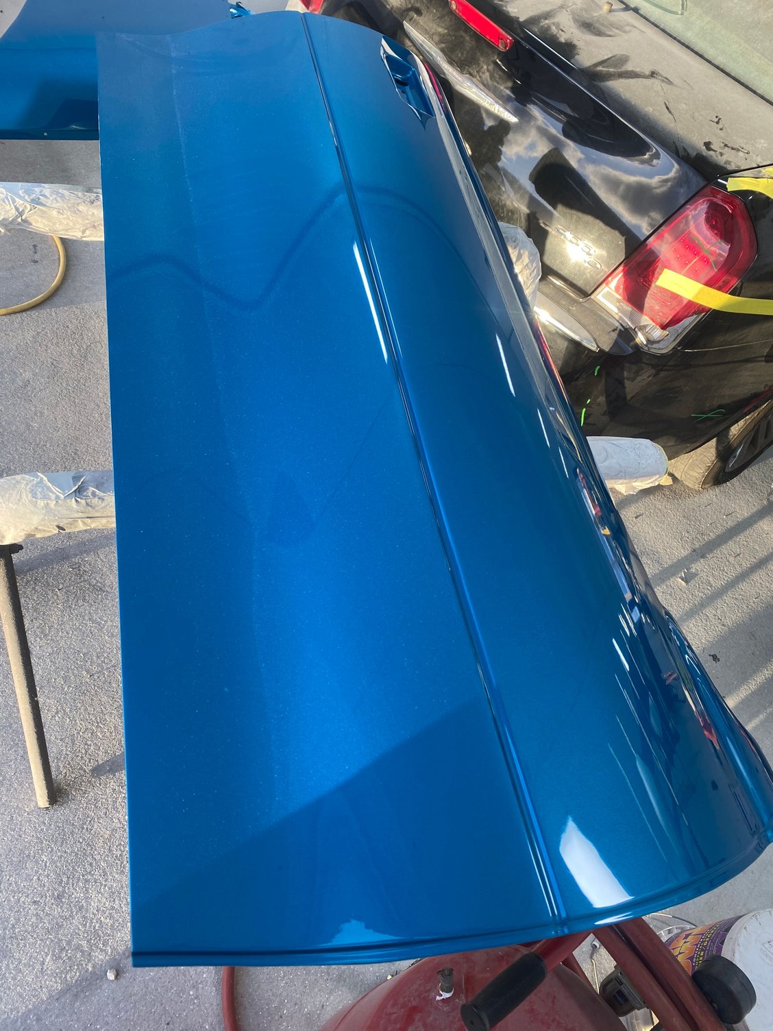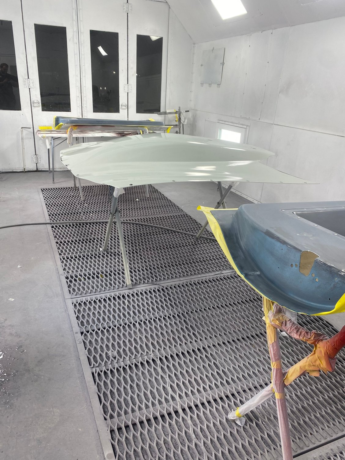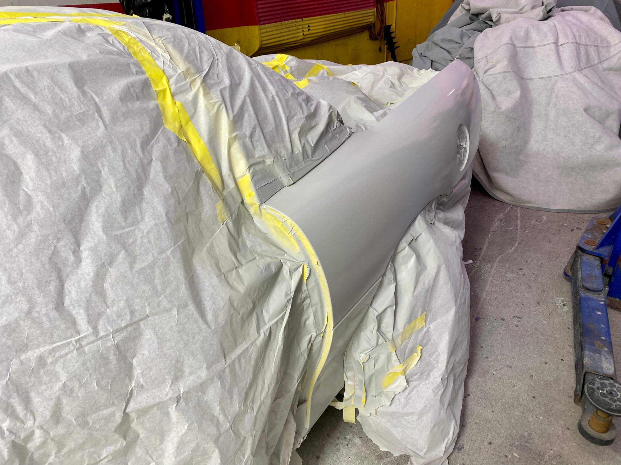 First thing I said to the painter is we are going to have to scratch something in the booth lol. It is coming out way better than I had expected, there’s still more to do. We stayed late last night and got the hood and inner doors done. He’s going to try and get the front clip and bumper today sprayed!
