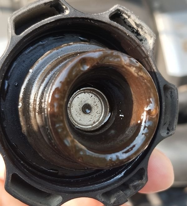 Hello. 2011 Camaro SS, L99 110K mileage. Week ago i've replaced VVT seal because it was leaking right onto the front main seal. That time after removal the coolant pump I replenished the "****" coolant fluid (vey cheap and strange color ). Today I added some discilled water and found that white signs appeared in the radiator refill hole.