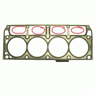 I have put circles where oil drainback occurs. This is the only place oil passes through the gasket. Oil lines in the heads? Oil gets to the valvetrain via the pushrods.