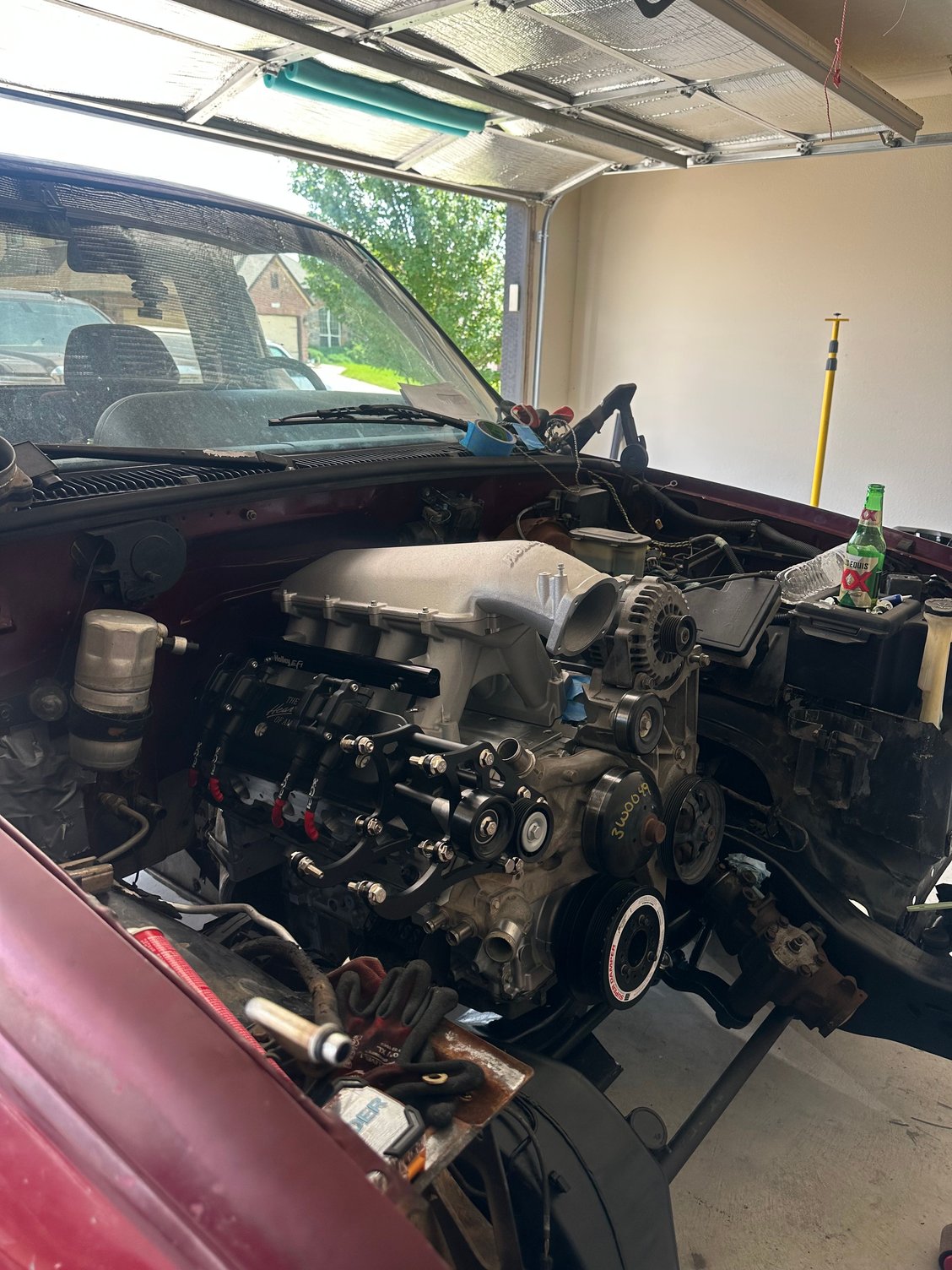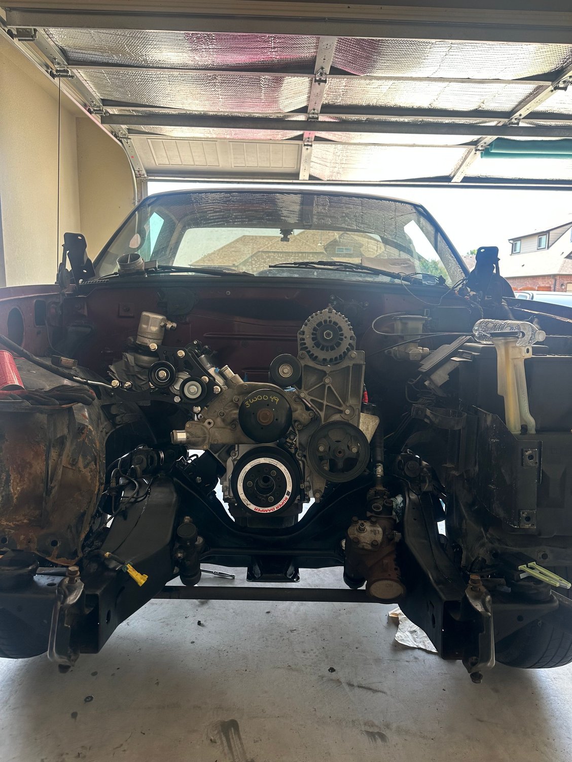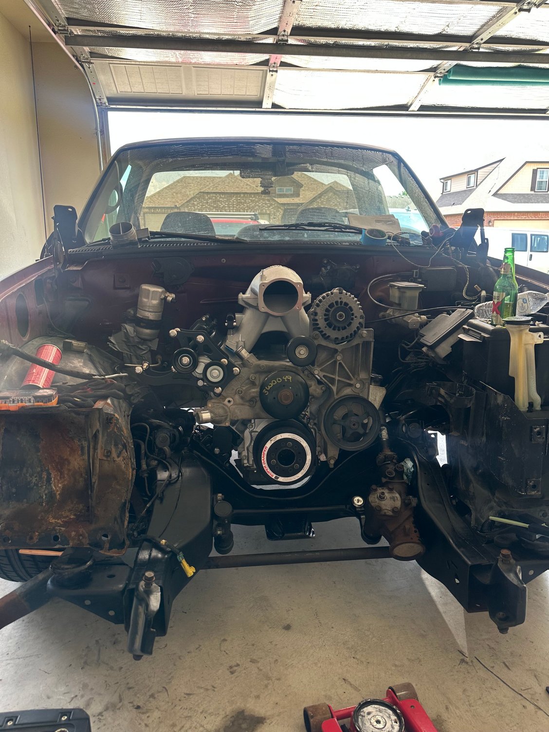I’m still chipping away at the build. Work has kicked my butt lately so my weekend time of working on the truck has been slim. BUT, I finally rolled it out of garage and deep cleaned the engine bay/frame. Cleaned up really well! (Don’t worry about the passenger side inner fender, it’s getting replaced)
